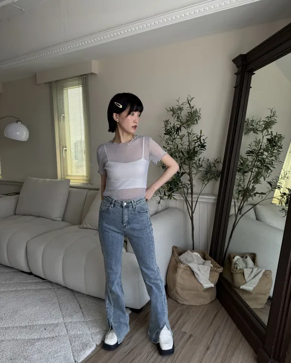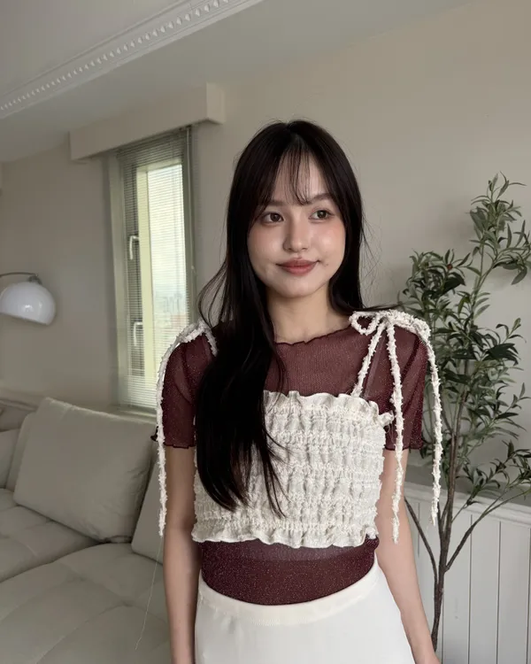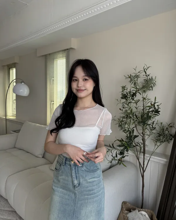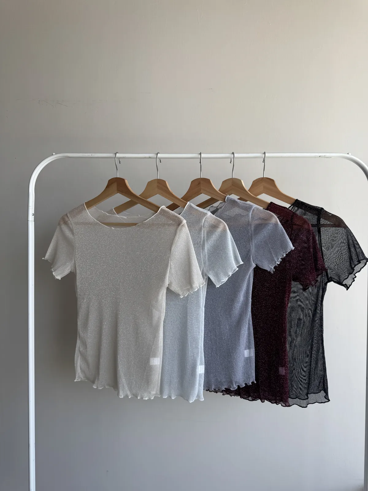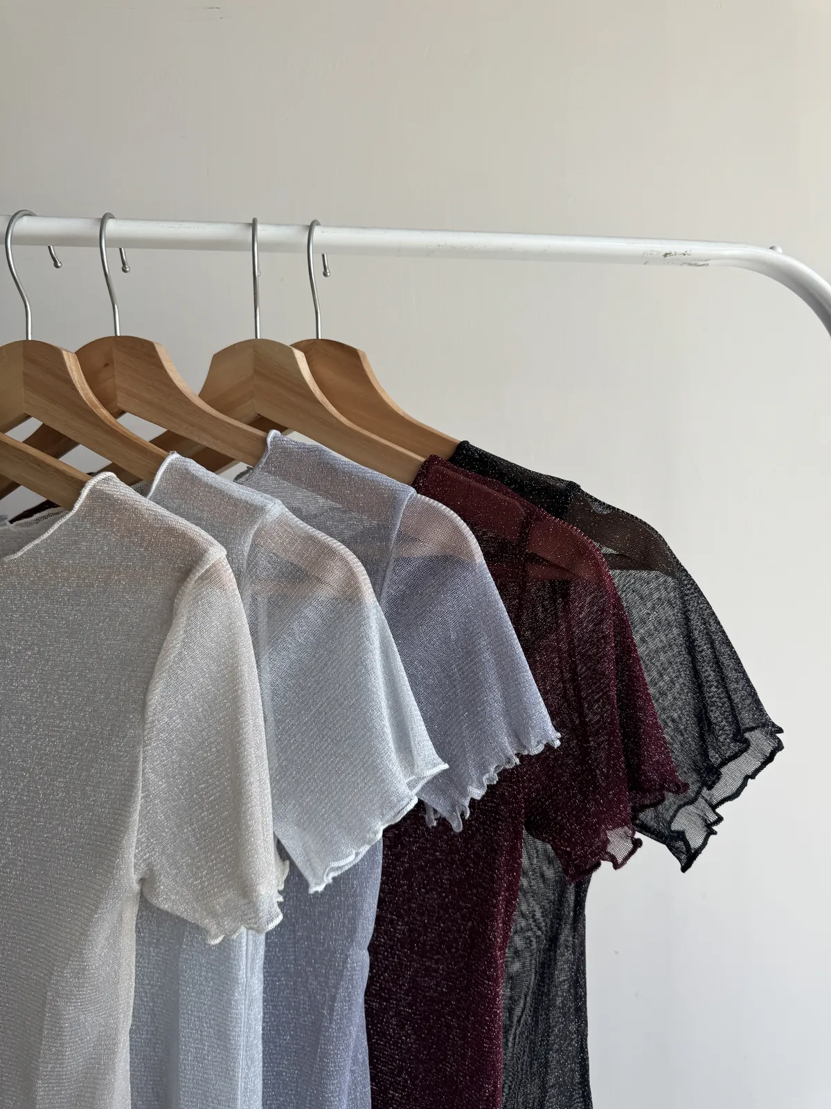 波光粼粼✨細閃木耳邊透膚上衣 6colors