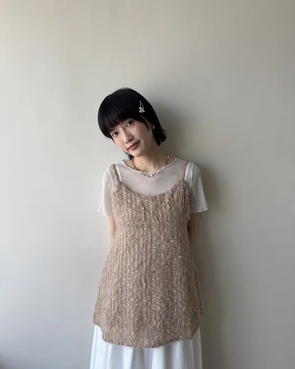 日系感立體羽毛短版背心 2colors