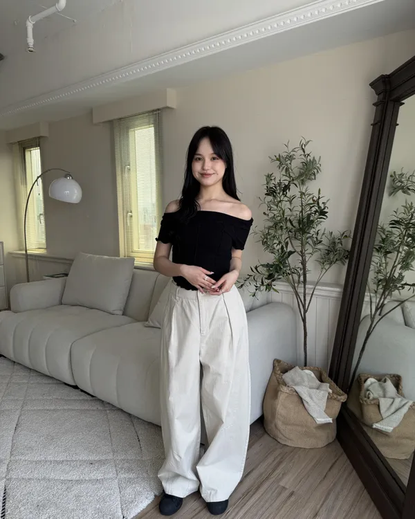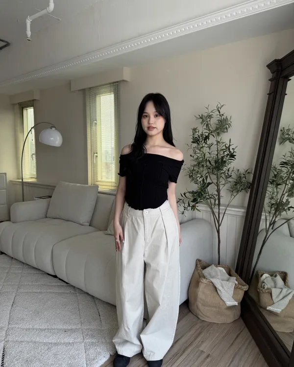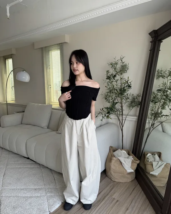 日系微繭型後鬆緊卡其寬褲 2colors