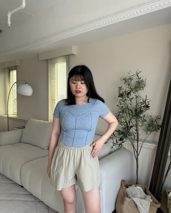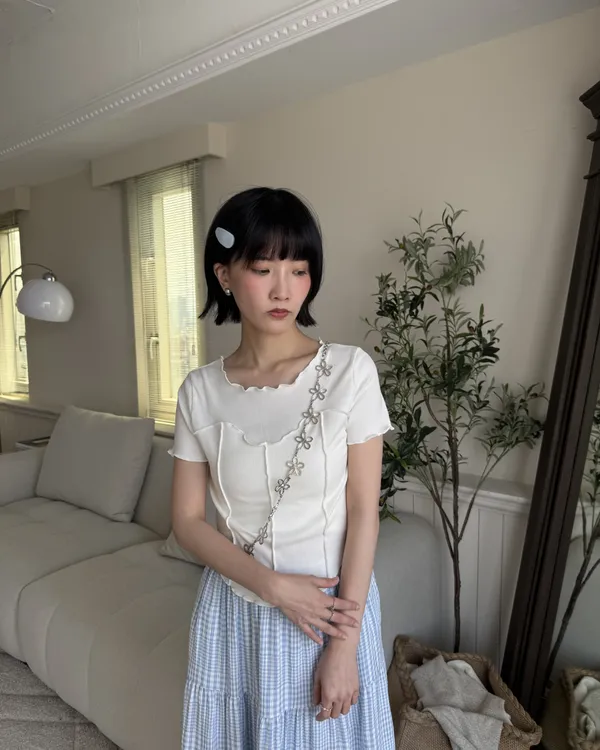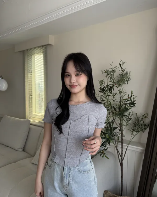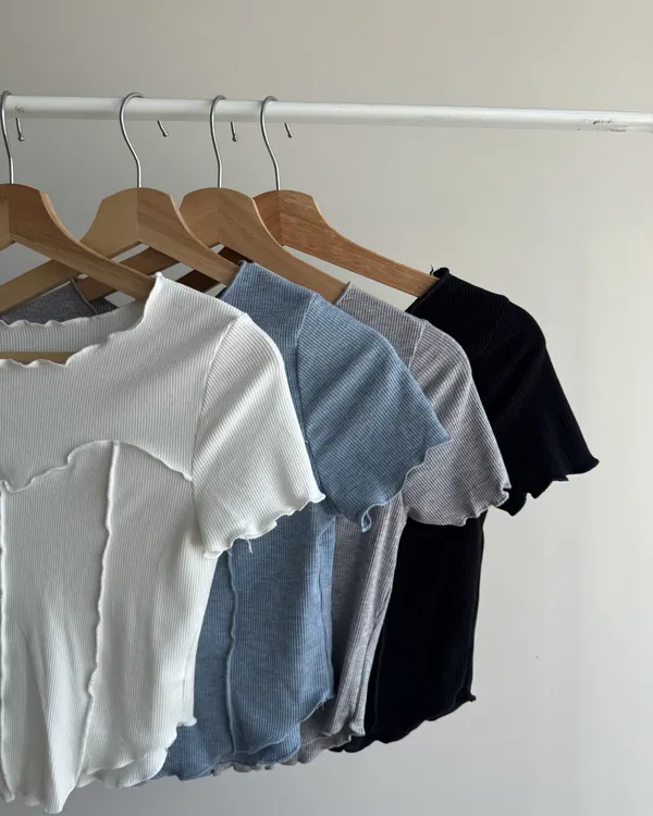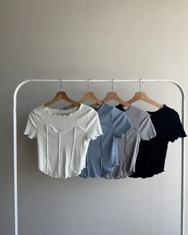 立體捲邊坑條短Tee 4colors