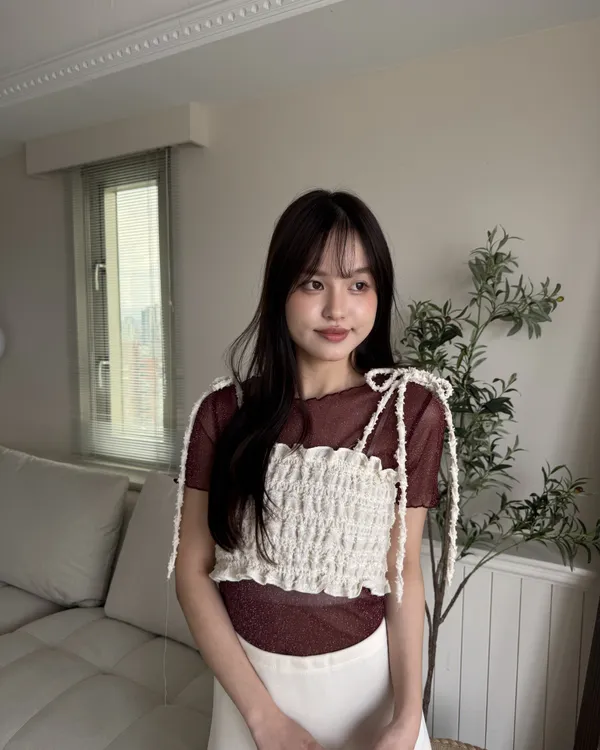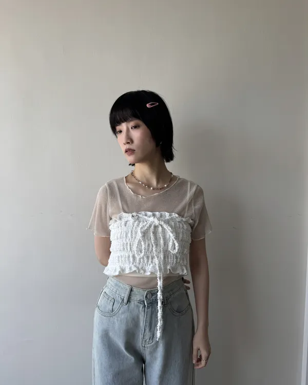 波光粼粼✨細閃木耳邊透膚上衣 6colors