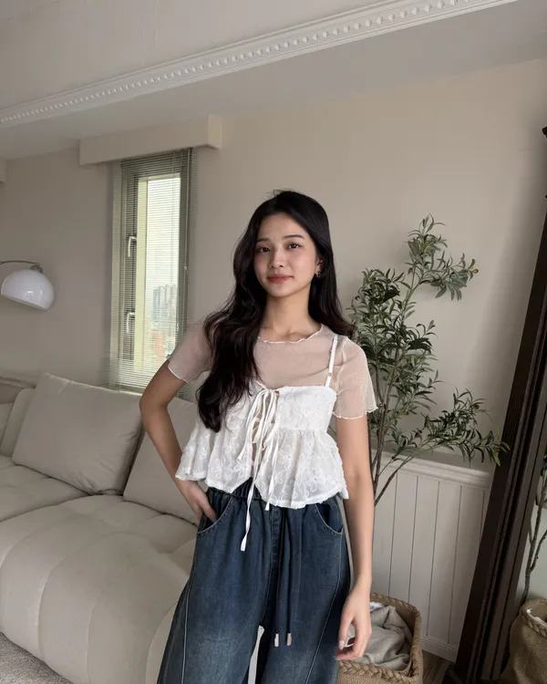 波光粼粼✨細閃木耳邊透膚上衣 6colors