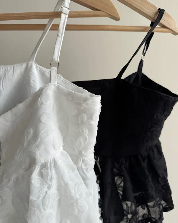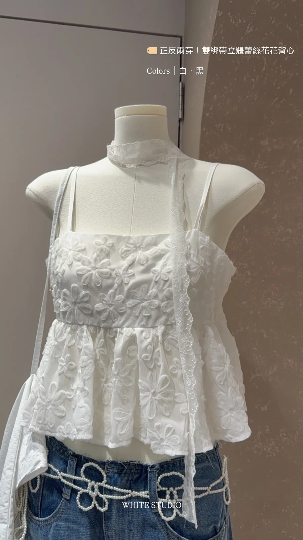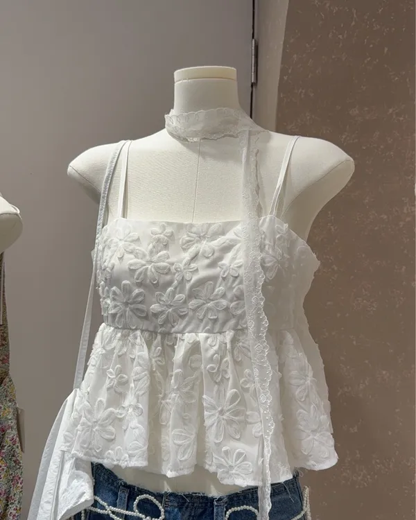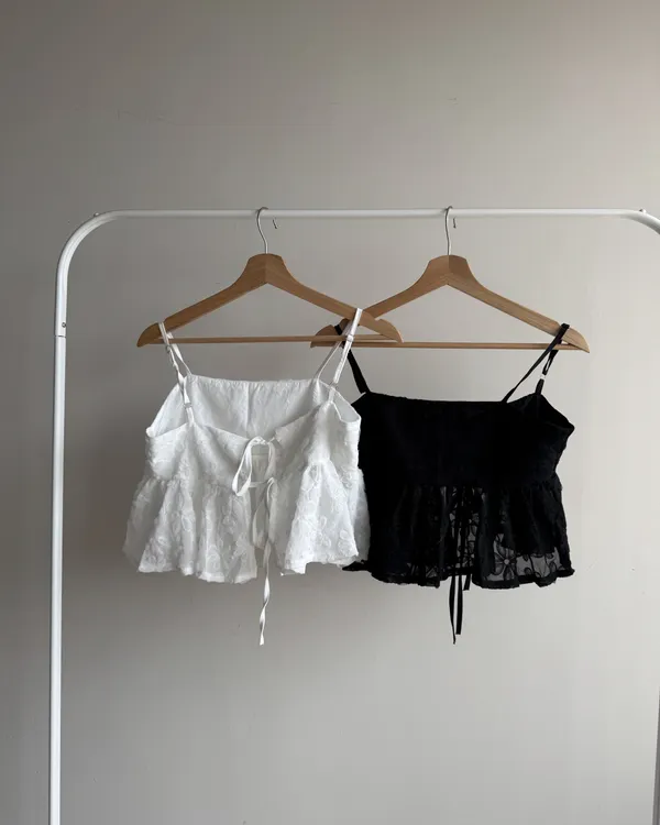 正反兩穿!雙綁帶立體蕾絲花花背心 2colors
