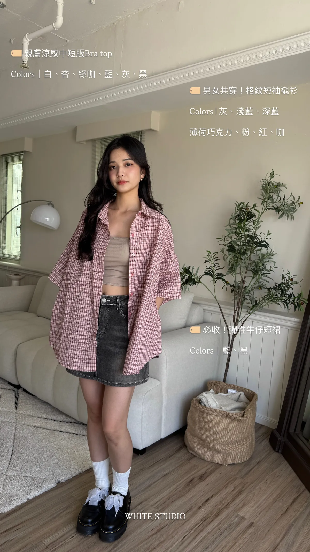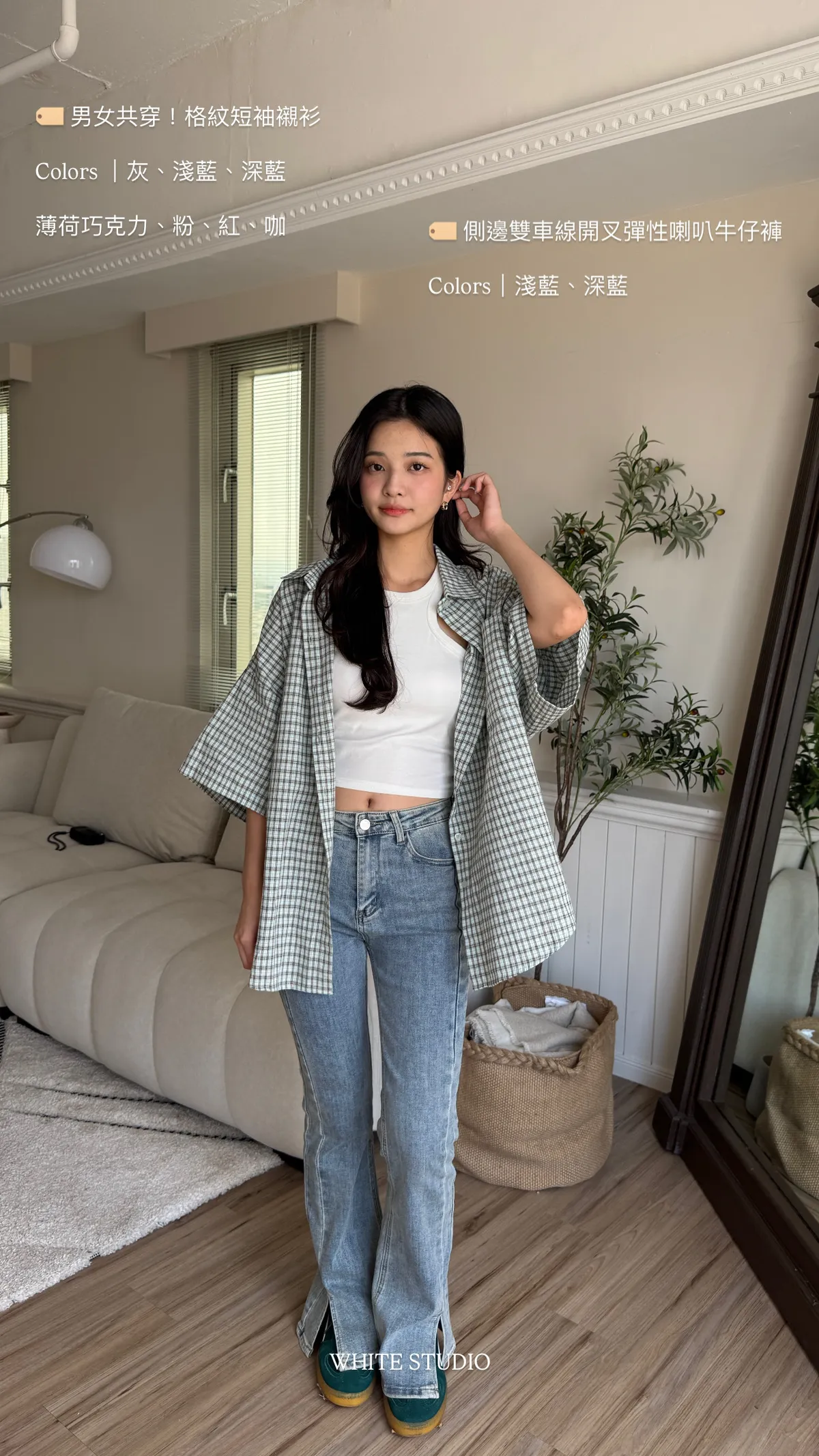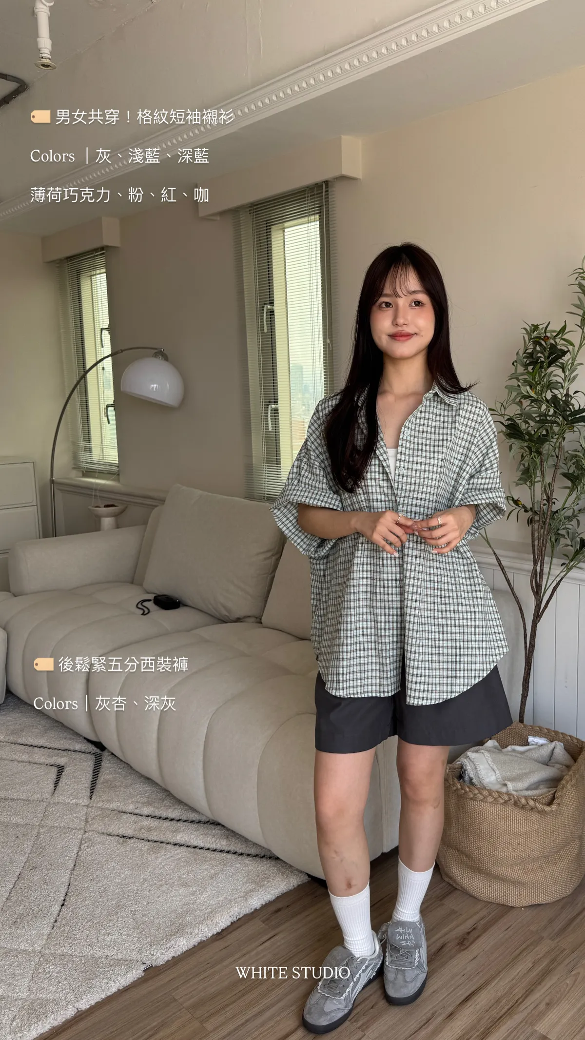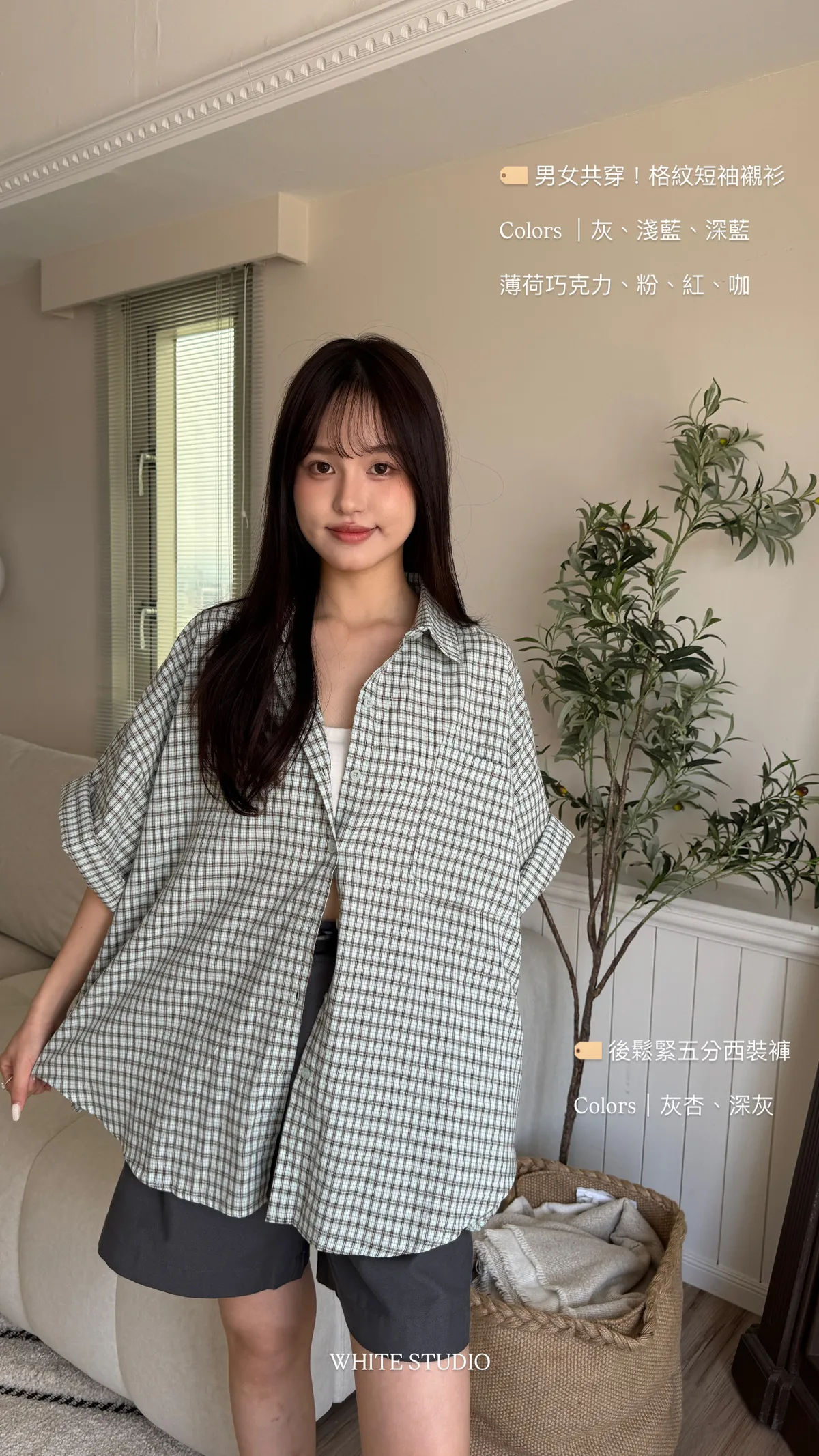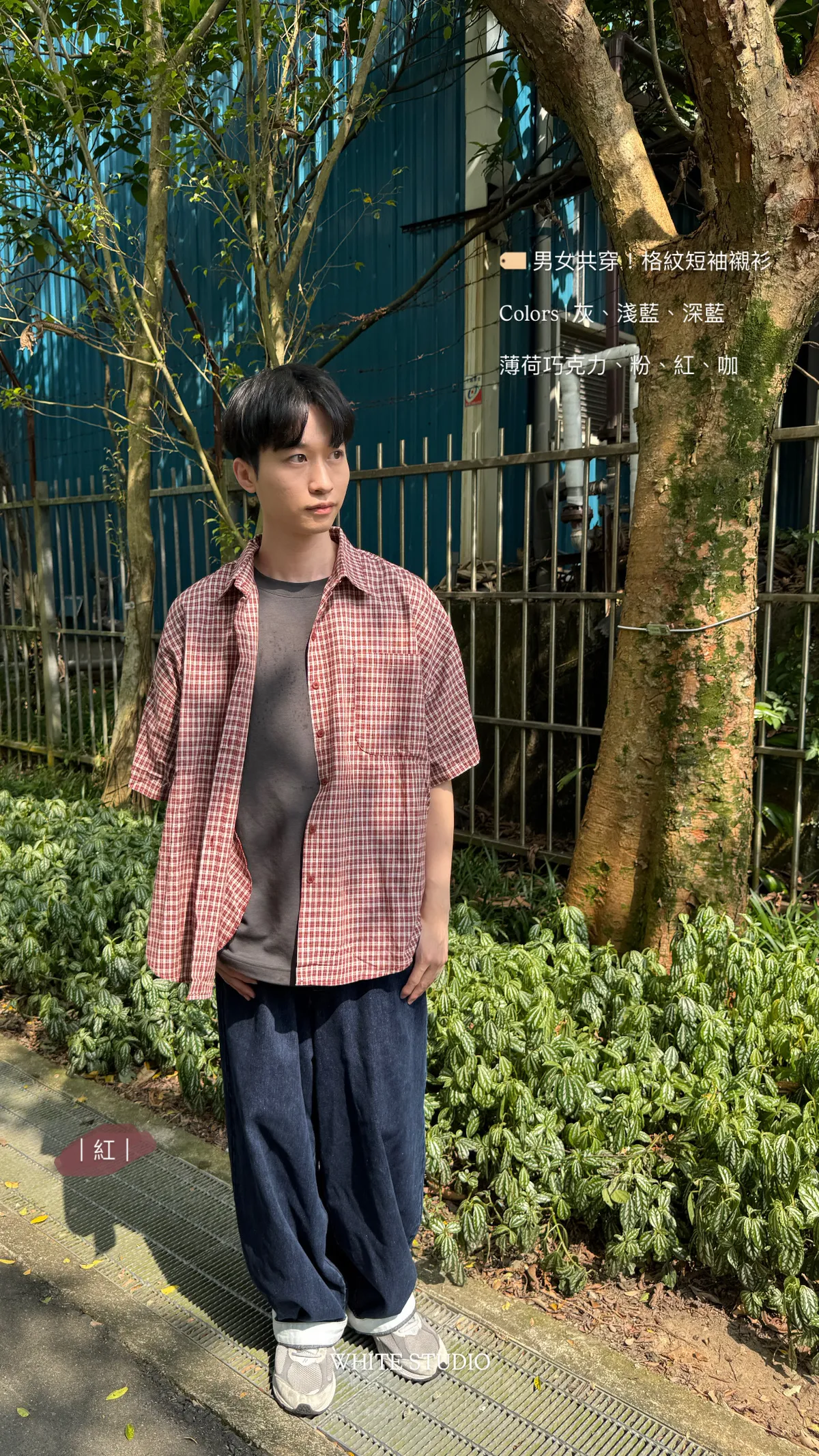 男女共穿!格紋短袖襯衫 (兩側口袋) 7colors