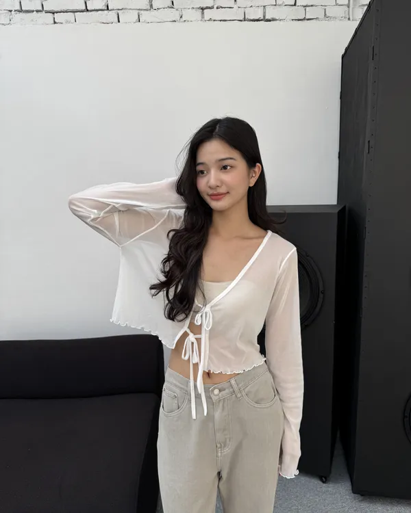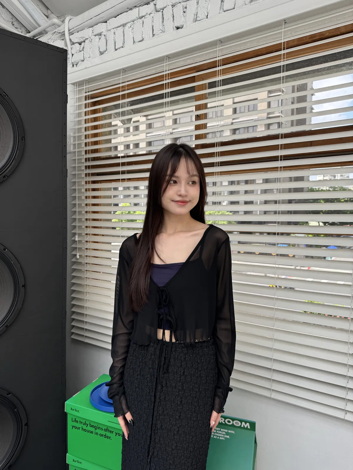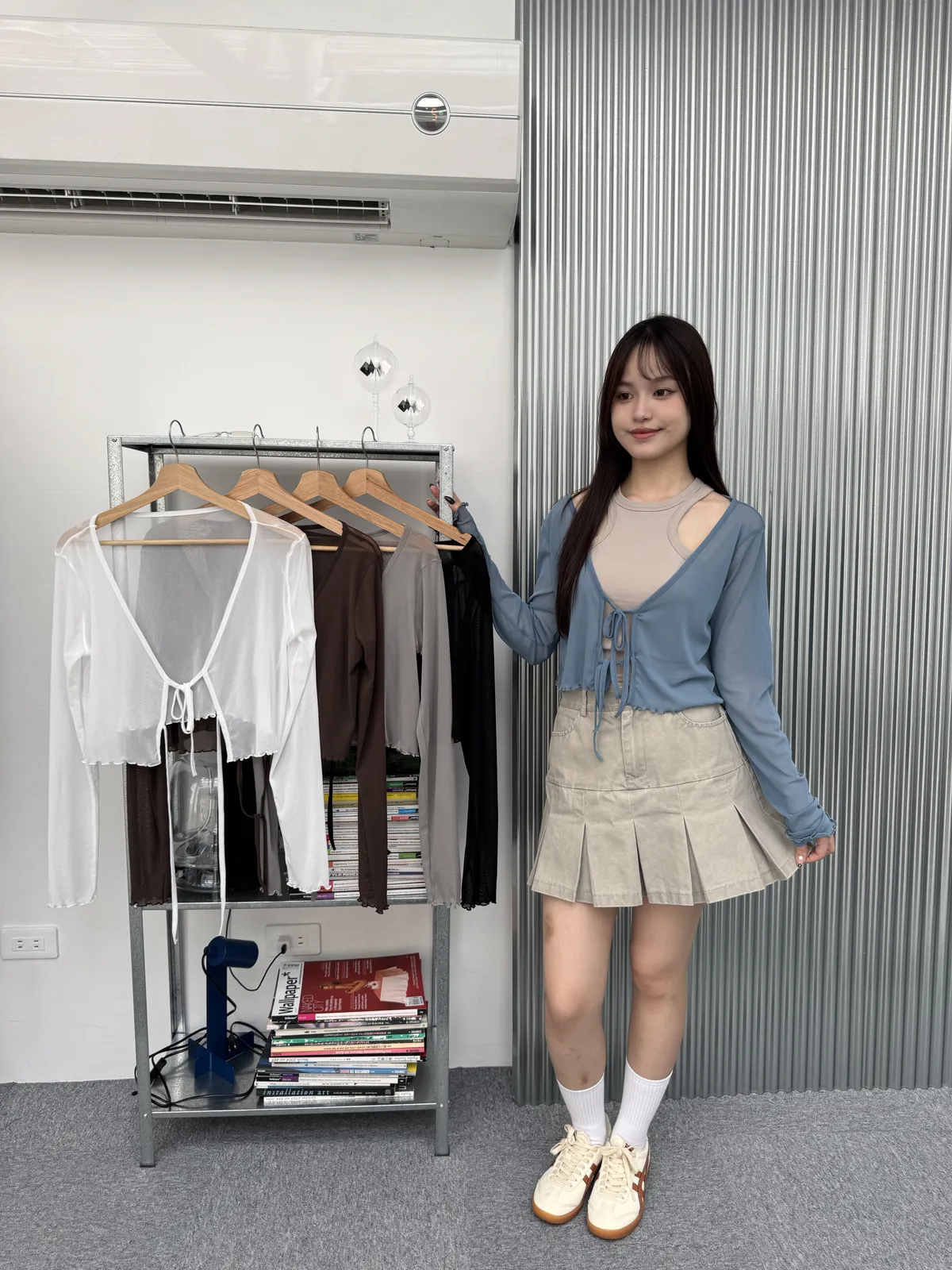 蝴蝶袖88!雙綁帶彈性透膚上衣 5colors