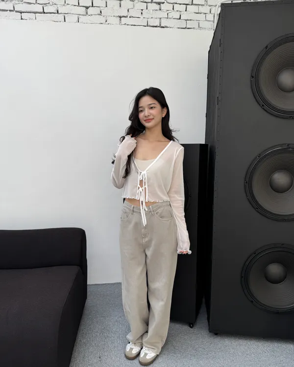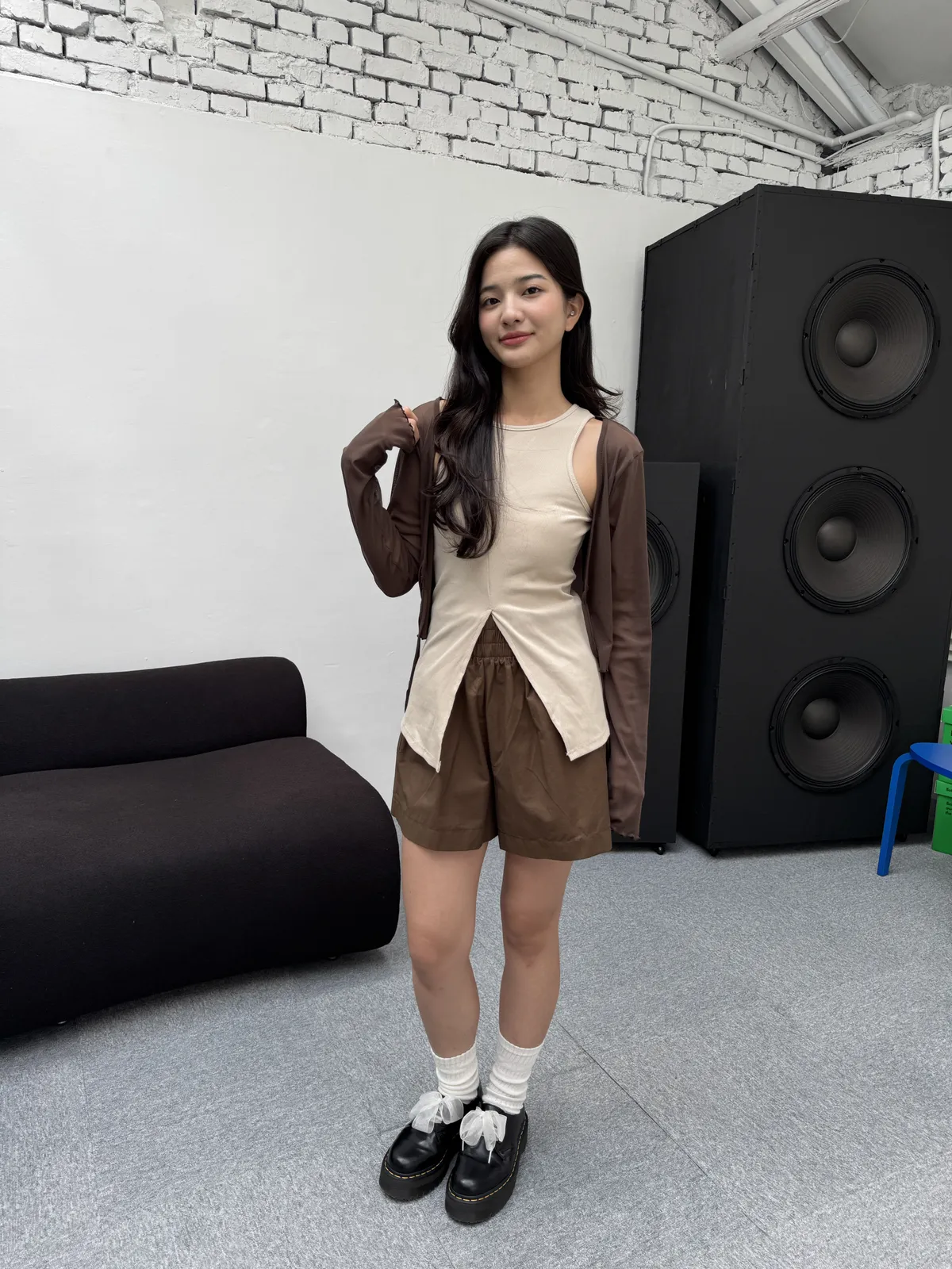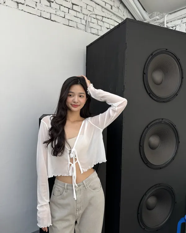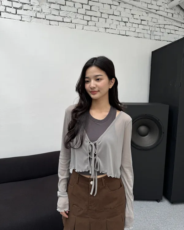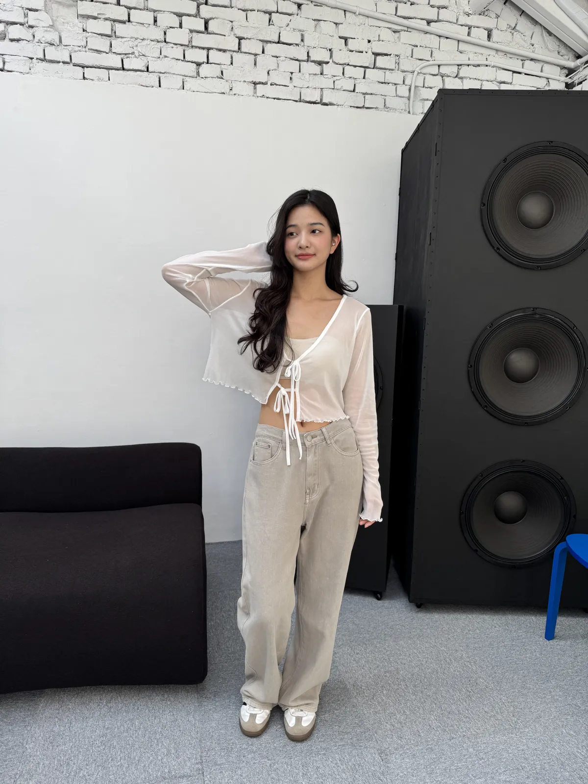 蝴蝶袖88!雙綁帶彈性透膚上衣 5colors
