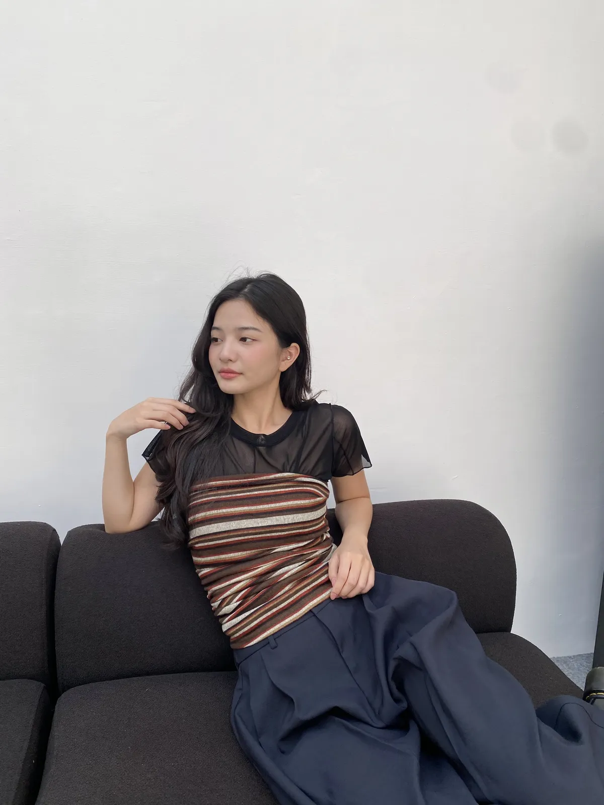 2WAY正反兩穿!立體線條透膚短Tee 4colors