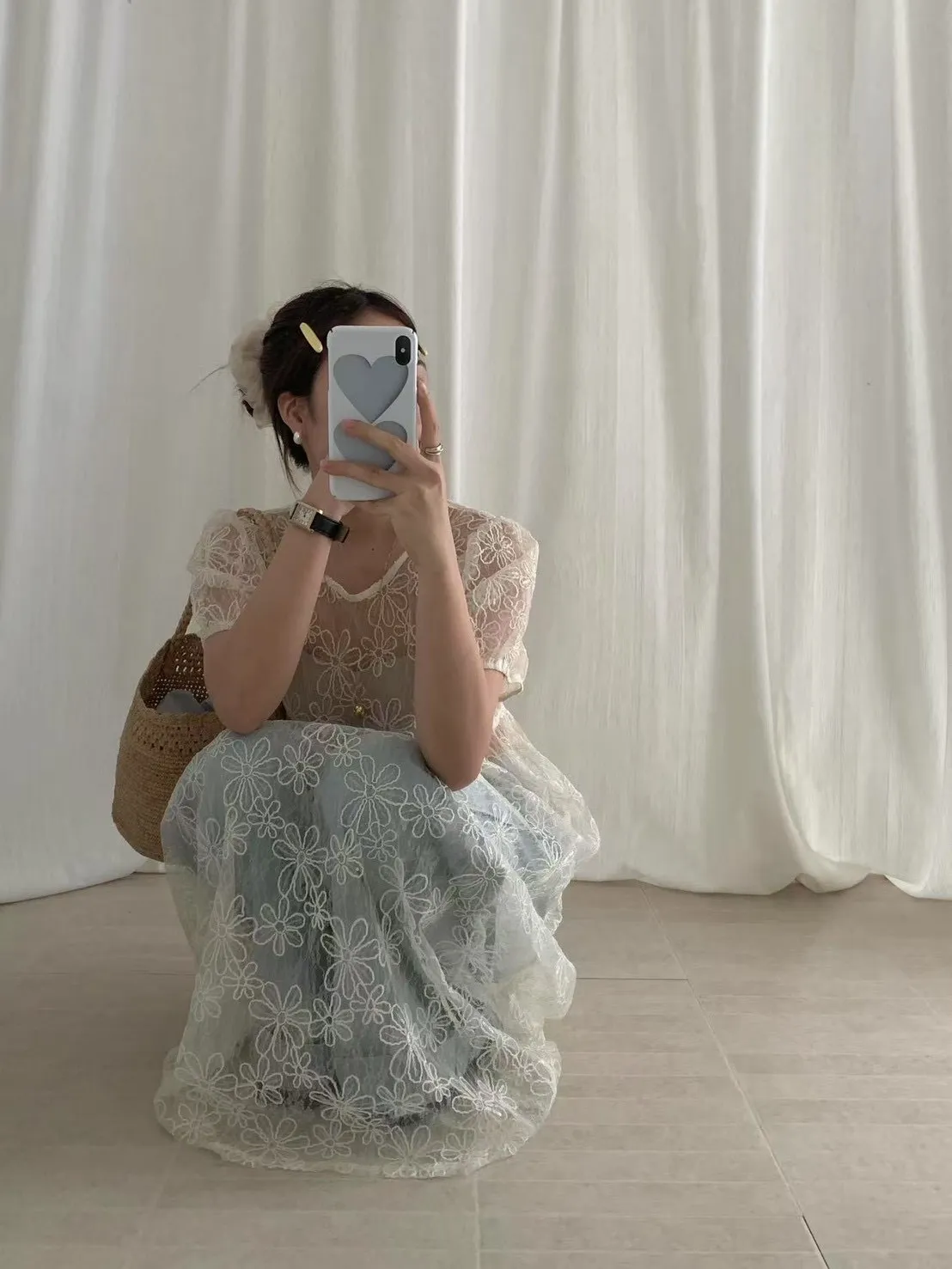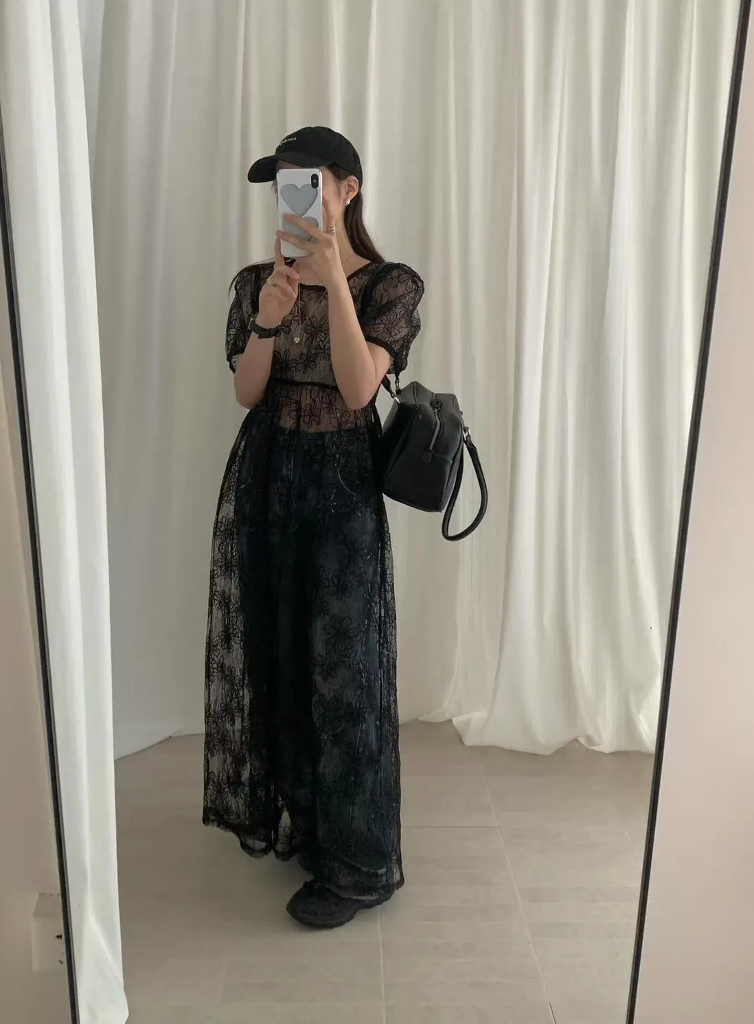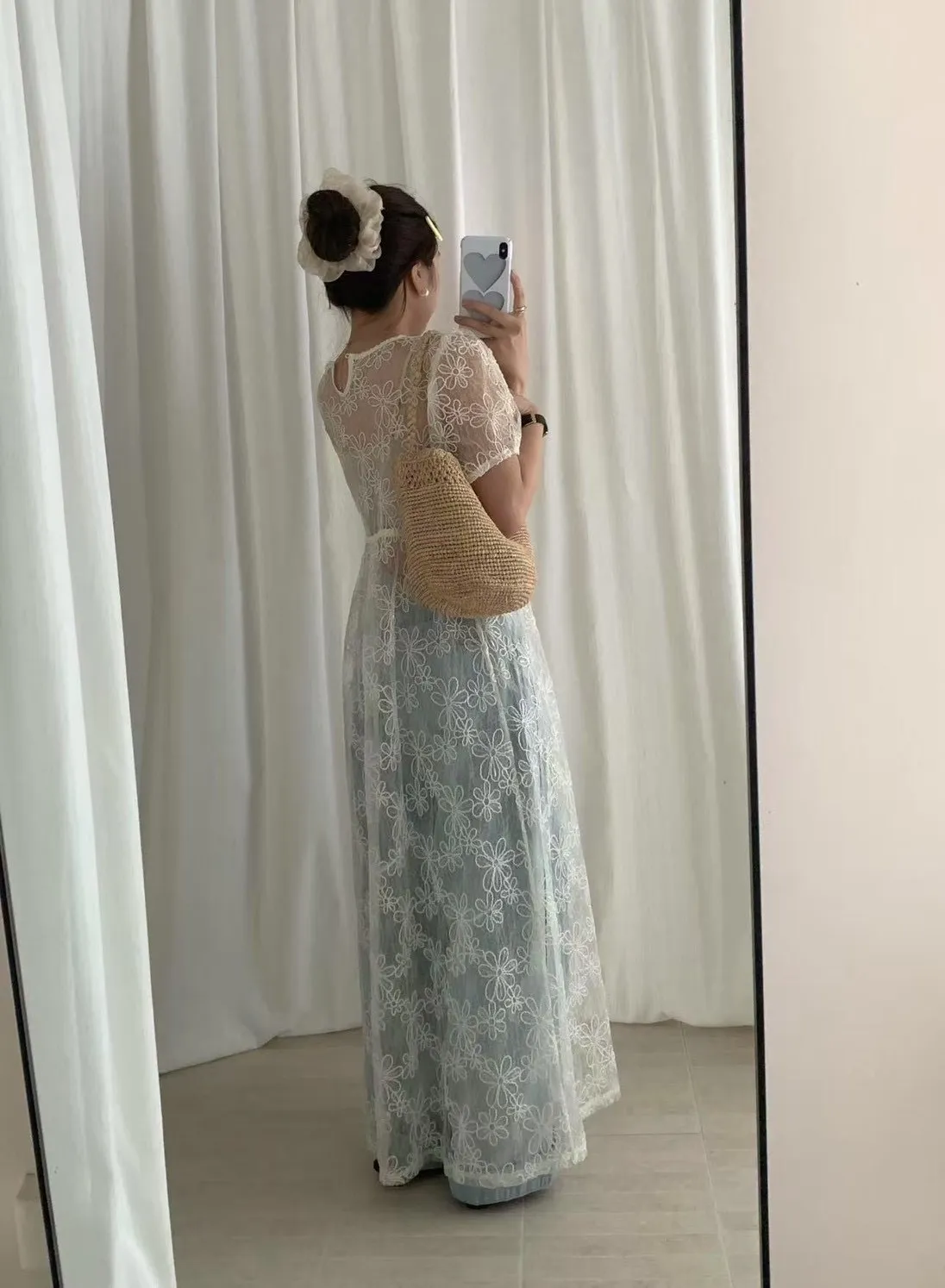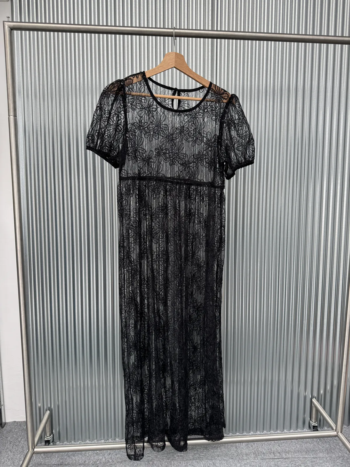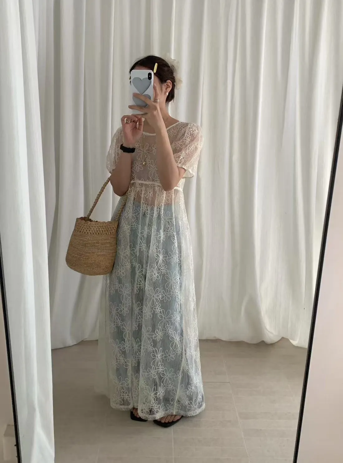 重工立體雕花澎袖罩衫洋裝 2colors