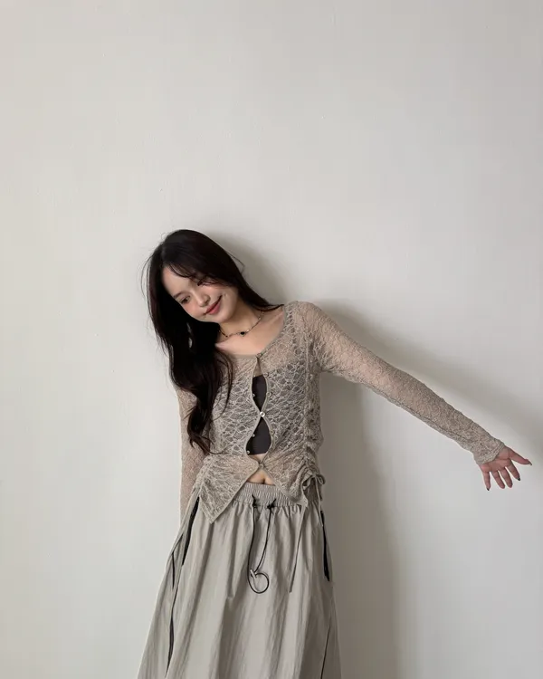 多種穿法!抽繩排釦蕾絲罩衫 6colors