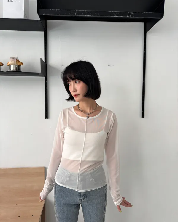 2WAY正反兩穿!立體線條透膚短Tee 4colors