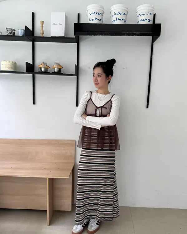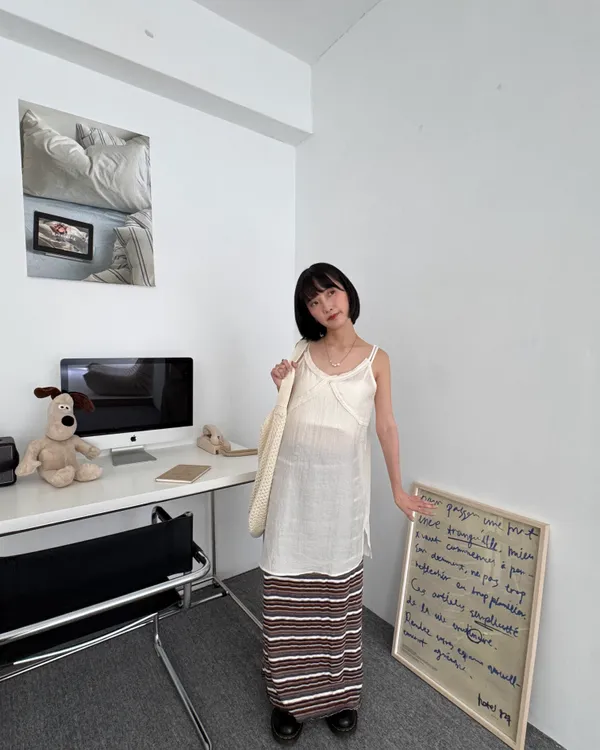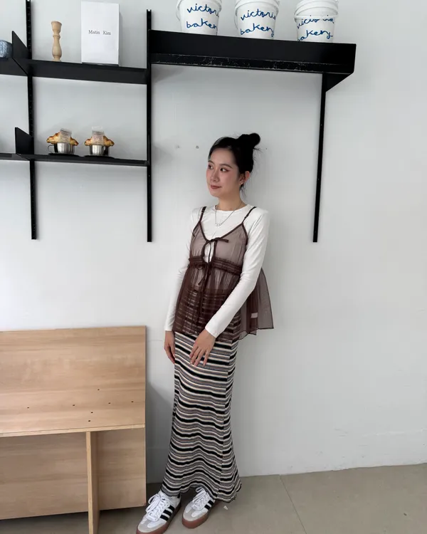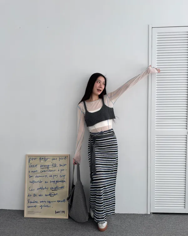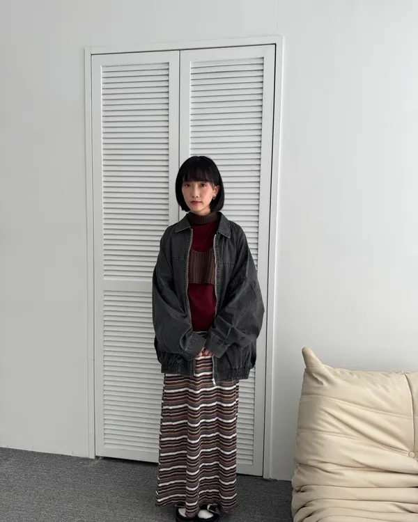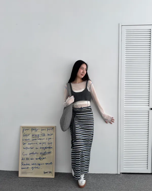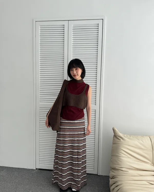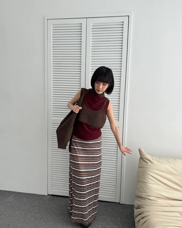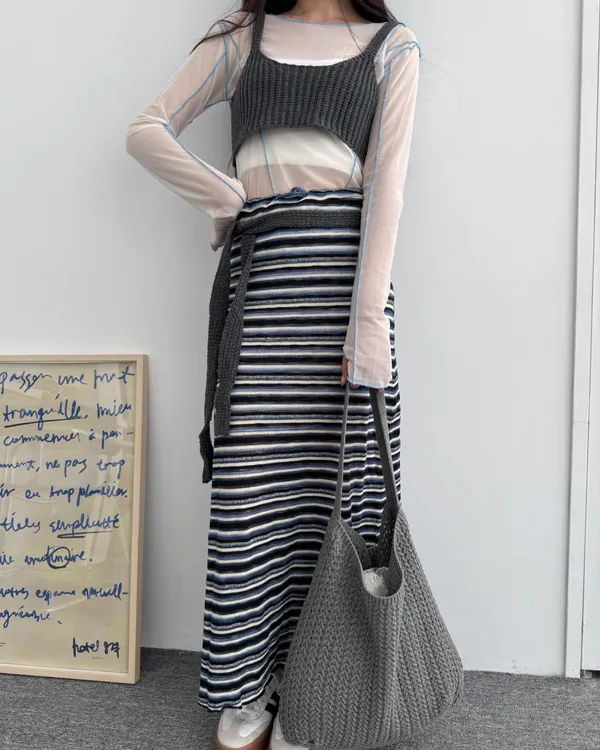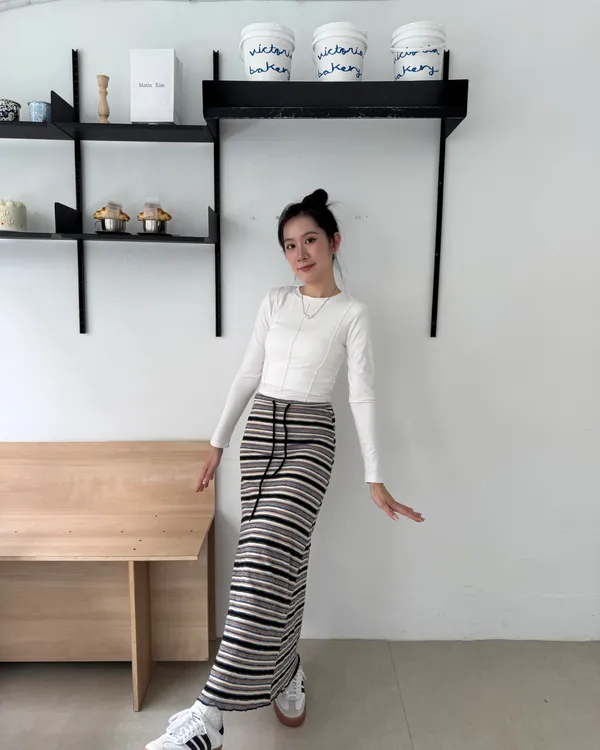 時髦撞色條紋長裙 3colors