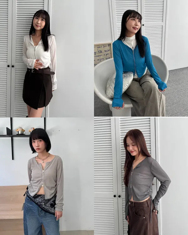 輕薄防曬!雙拉鍊側抽繩指套上衣 4colors