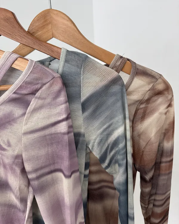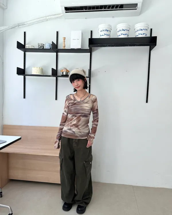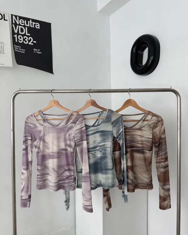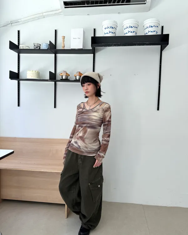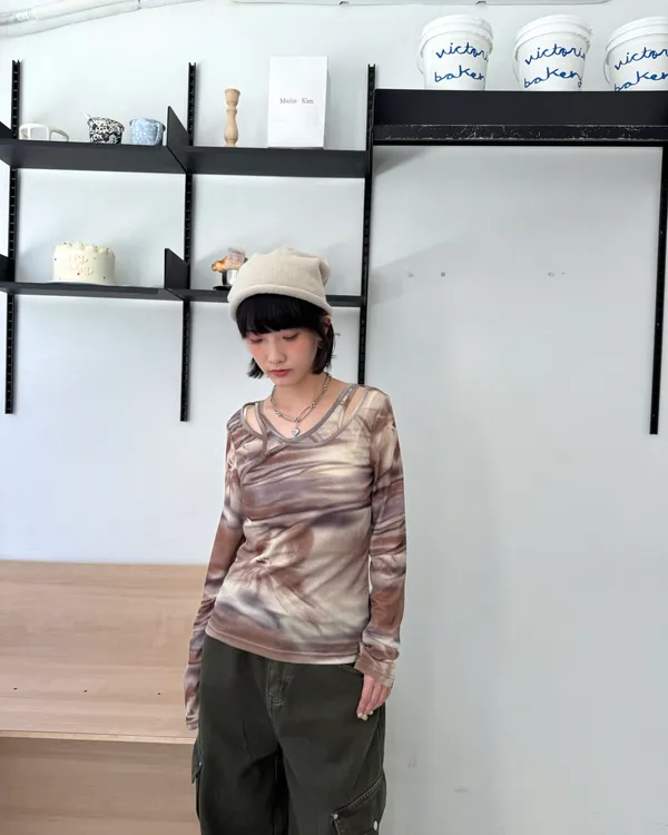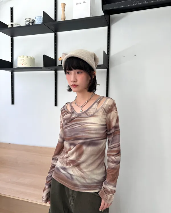 暈染交錯造型透膚上衣 3colors