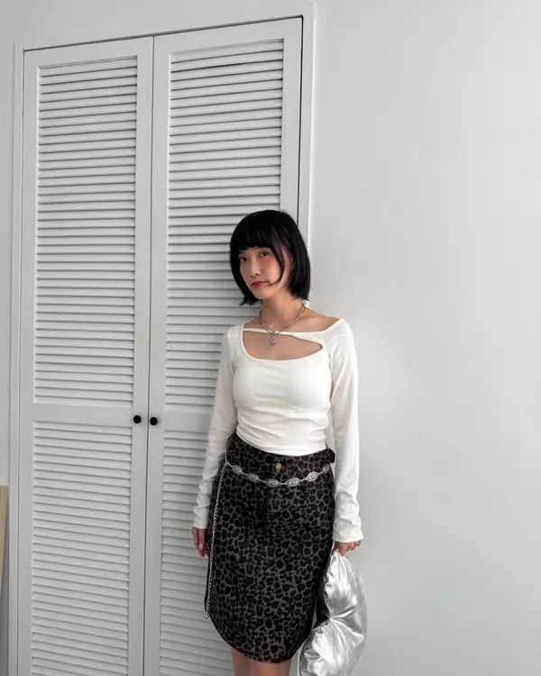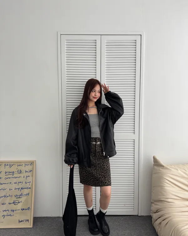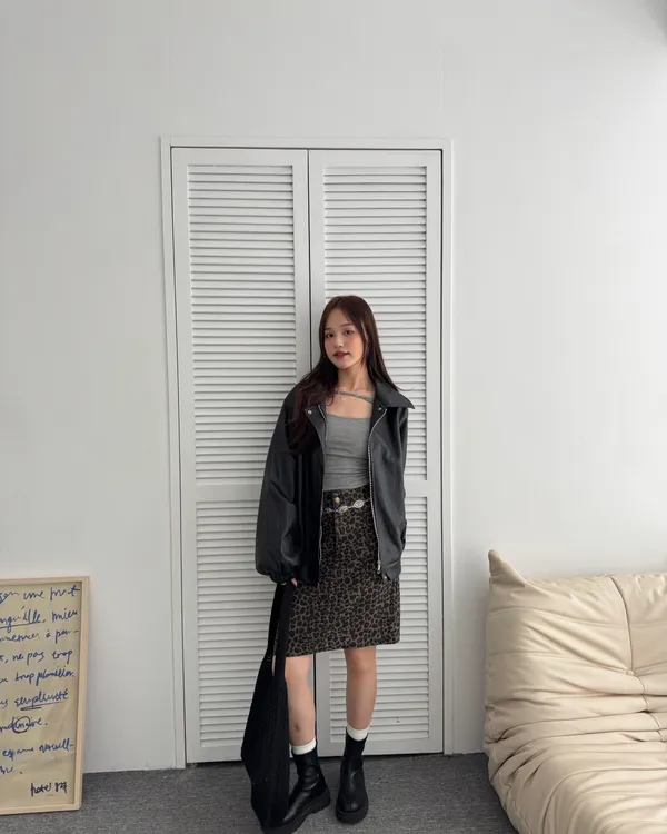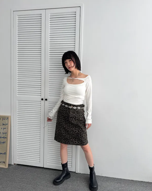 復古辣妹!水洗豹紋五分短裙