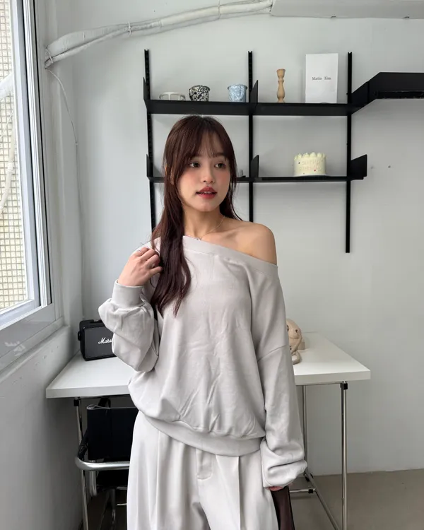 內磨毛慵懶斜肩上衣 4colors