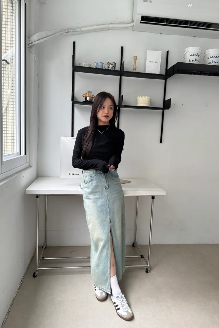 本期必收!極顯瘦前開衩牛仔長裙 3colors