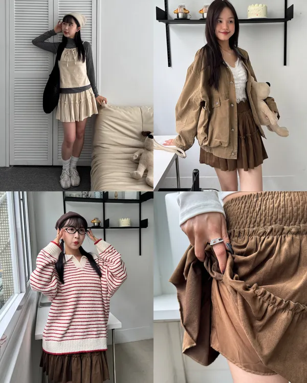 復古麂皮蛋糕短裙(內裏短褲) 3colors