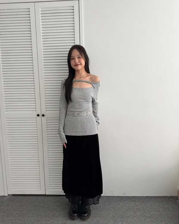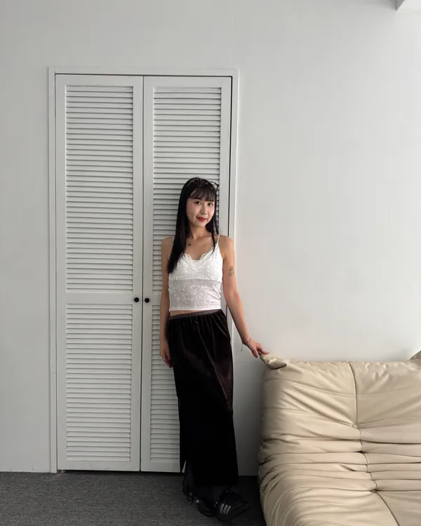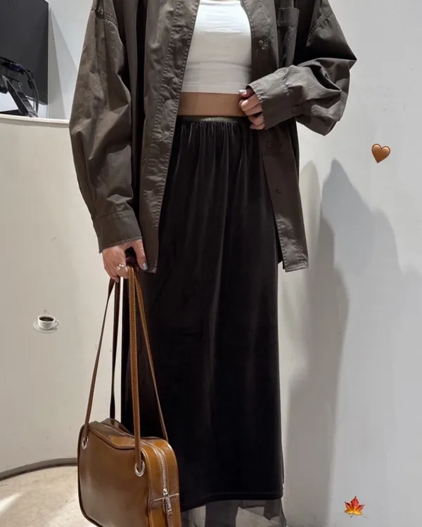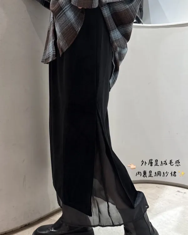 網紗拼接絨布長裙 2colors