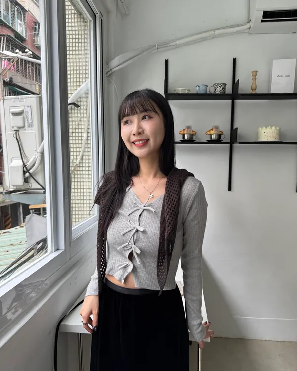 蝴蝶結排釦親膚彈性針織上衣 3colors