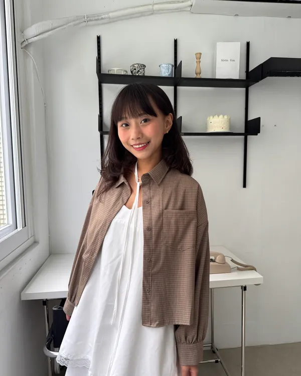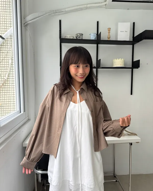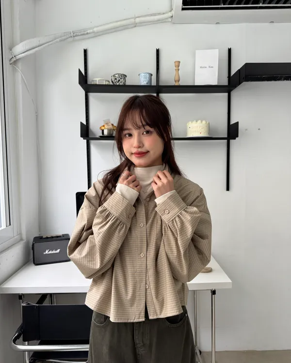 細格紋澎袖短版襯衫 3colors