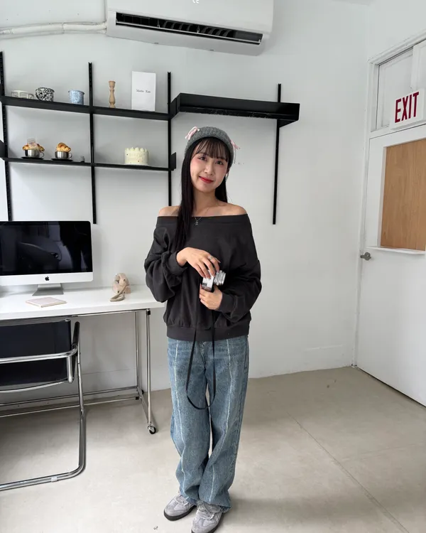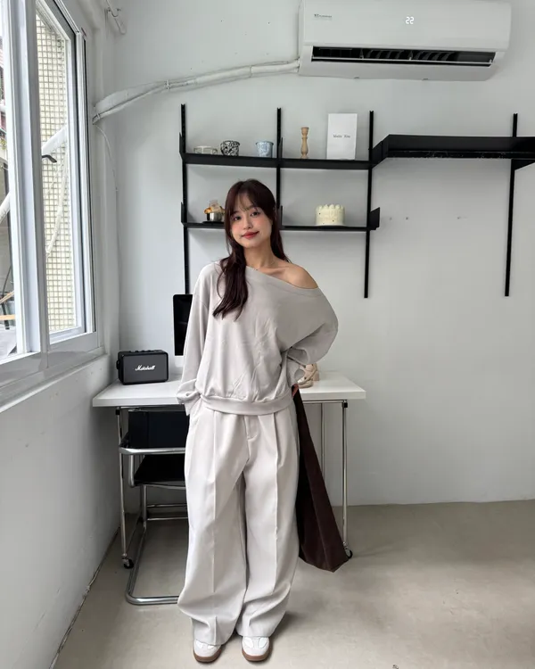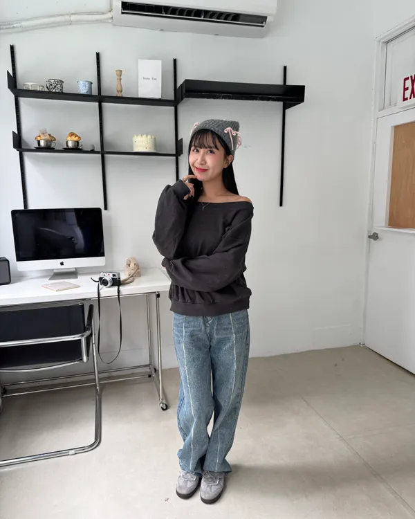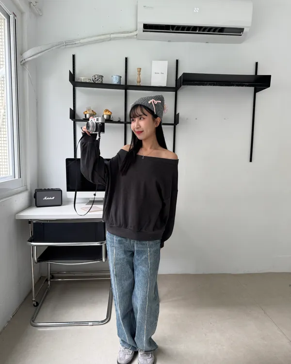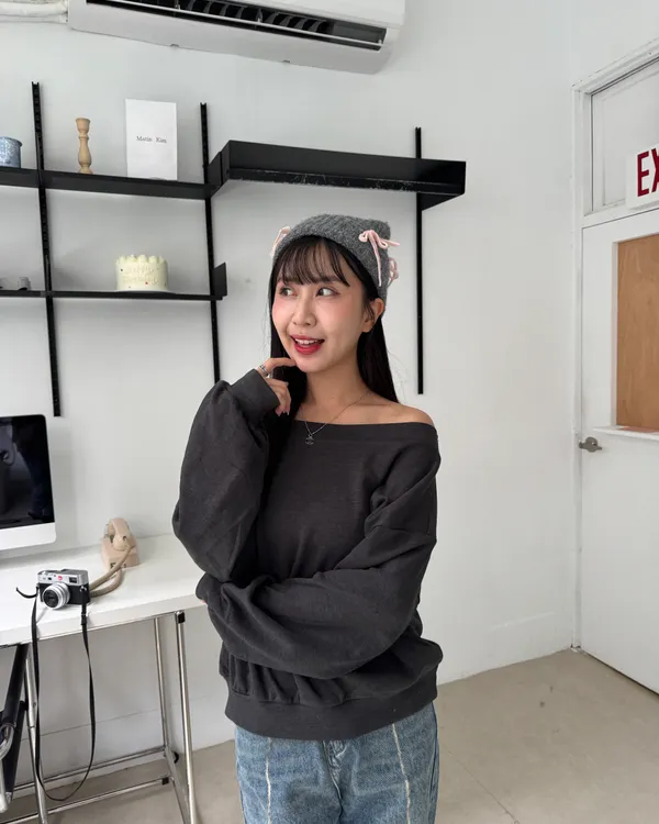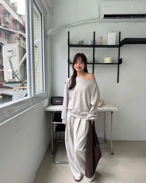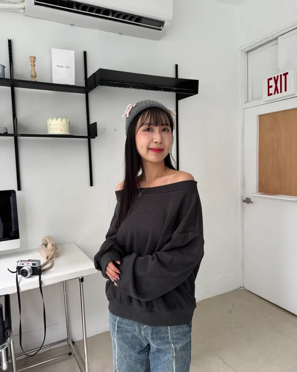 內磨毛慵懶斜肩上衣 4colors