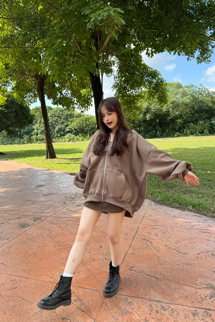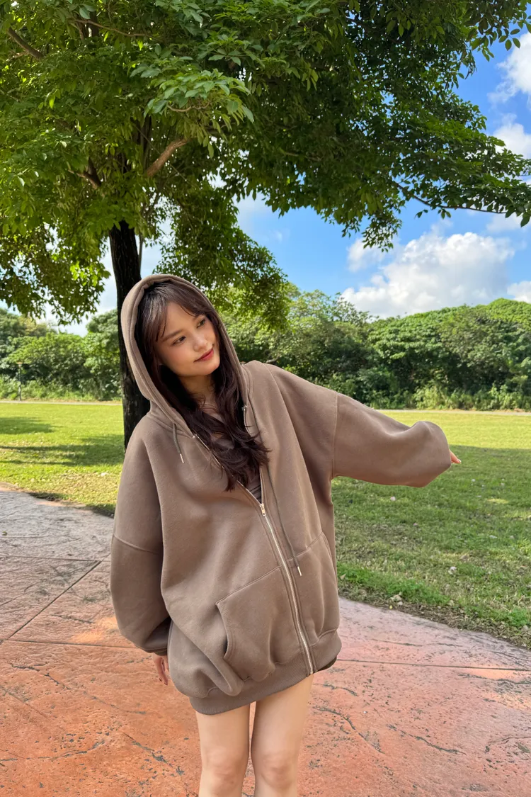 男女共穿!Oversize厚磅內刷絨大大連帽外套 4colors