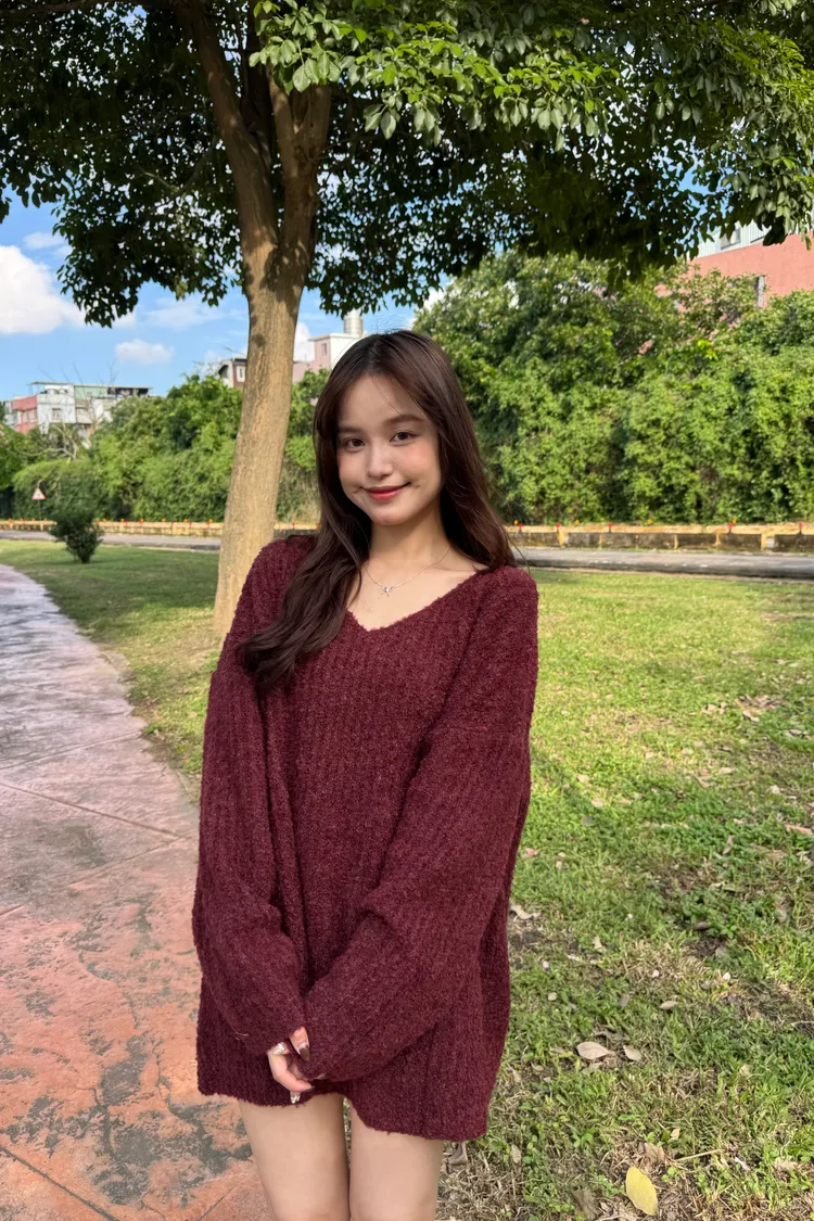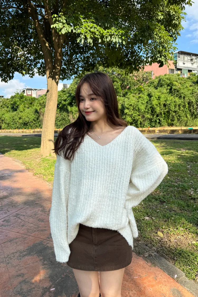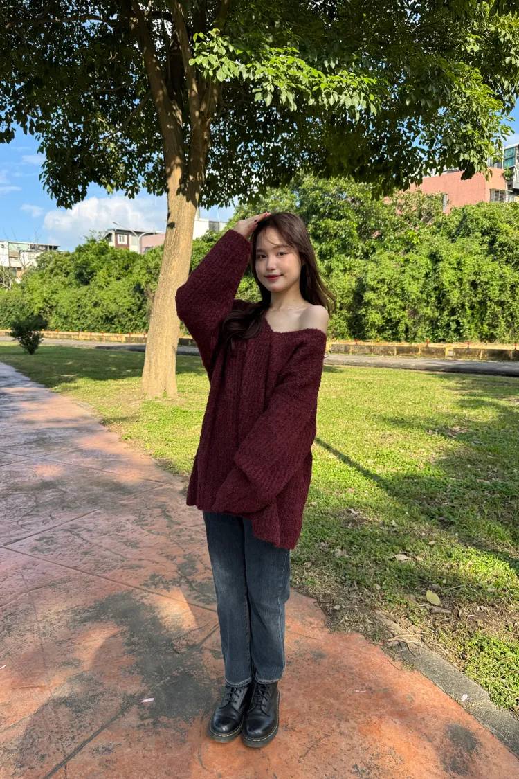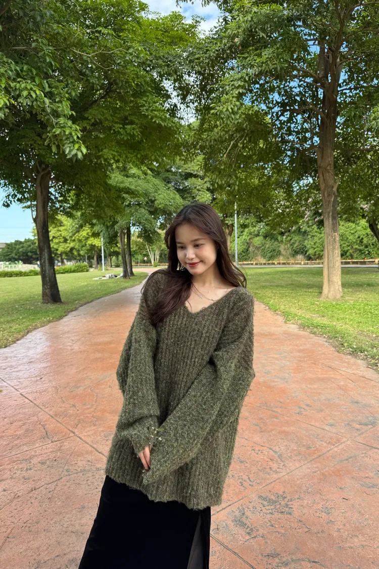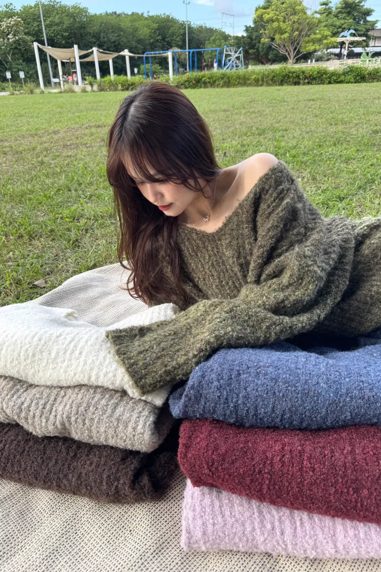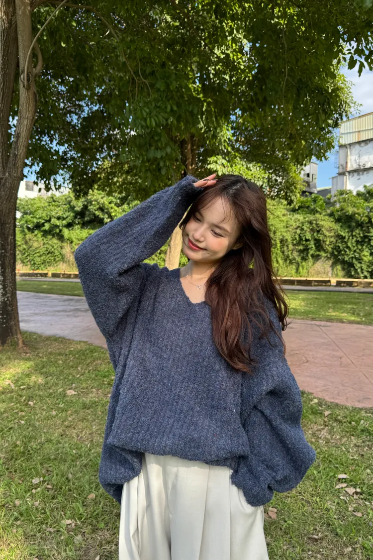 Oversize圈紗混色慵懶V領毛衣 7colors