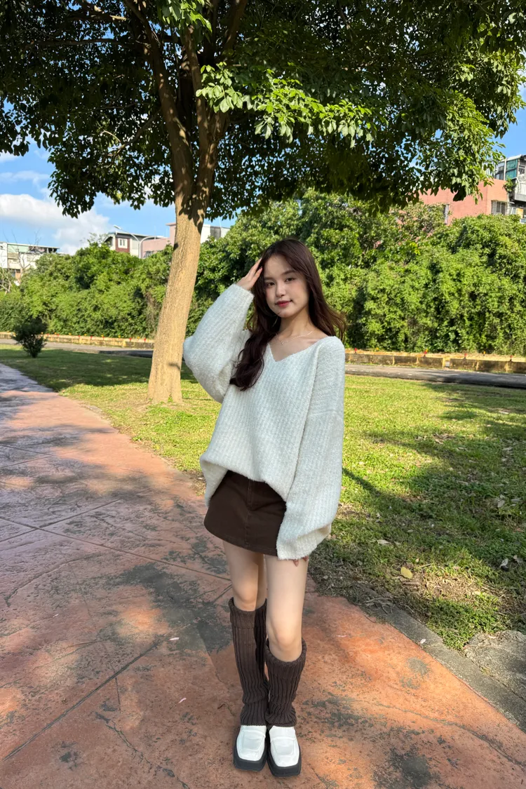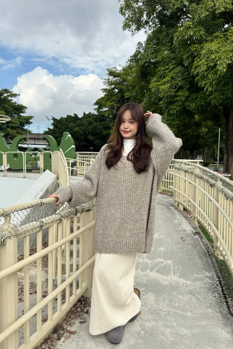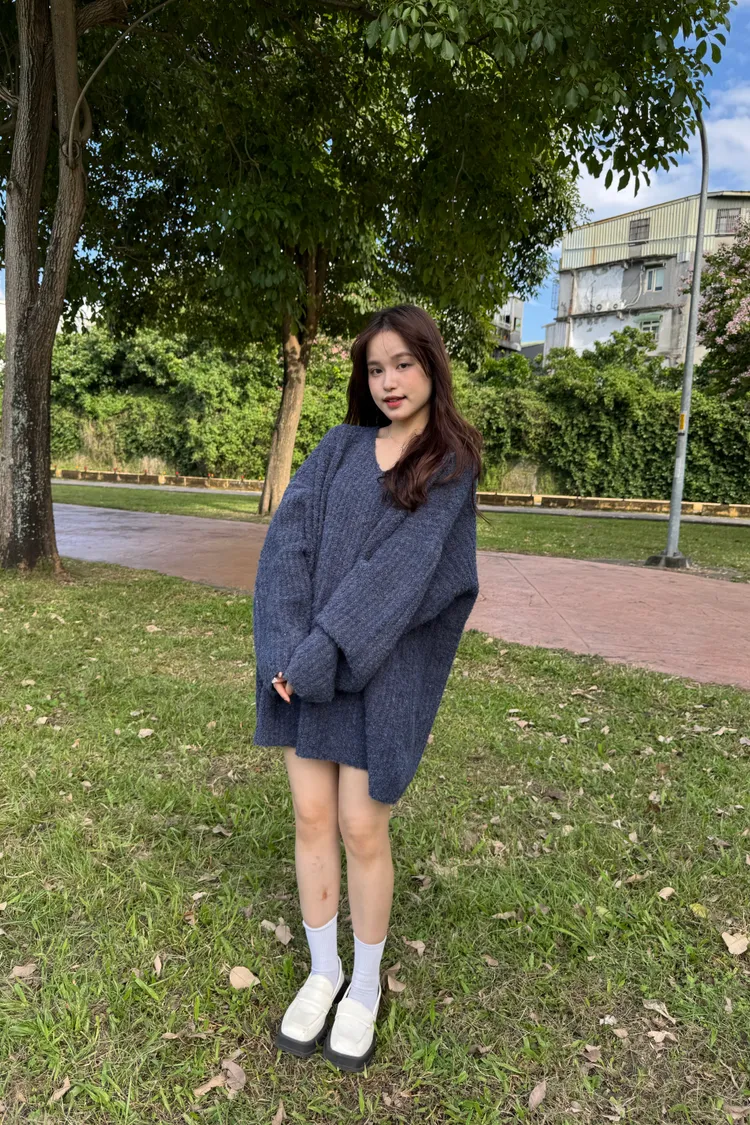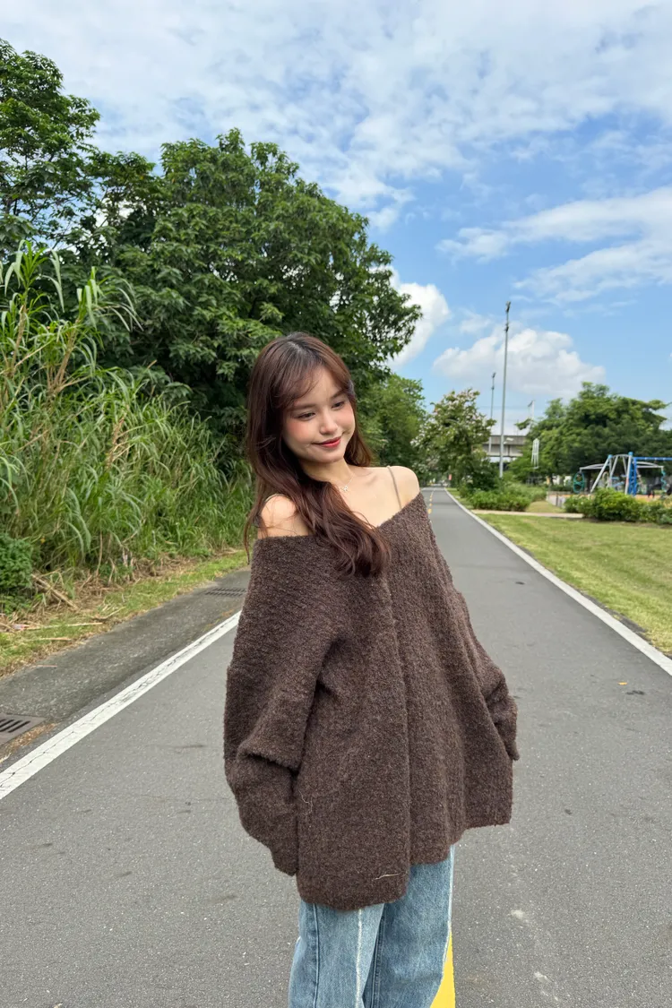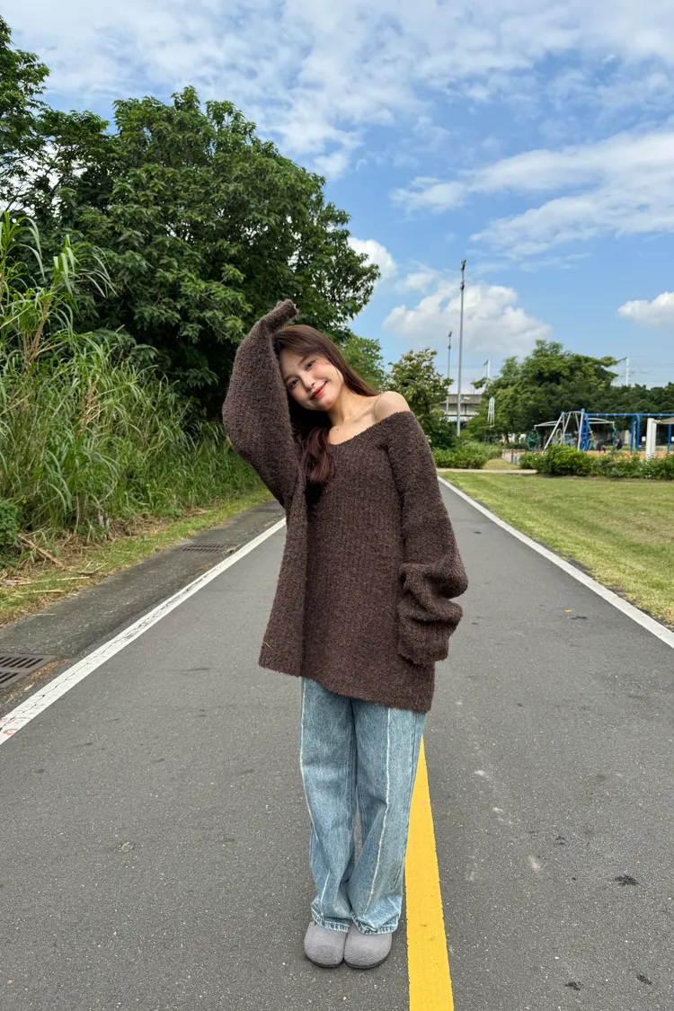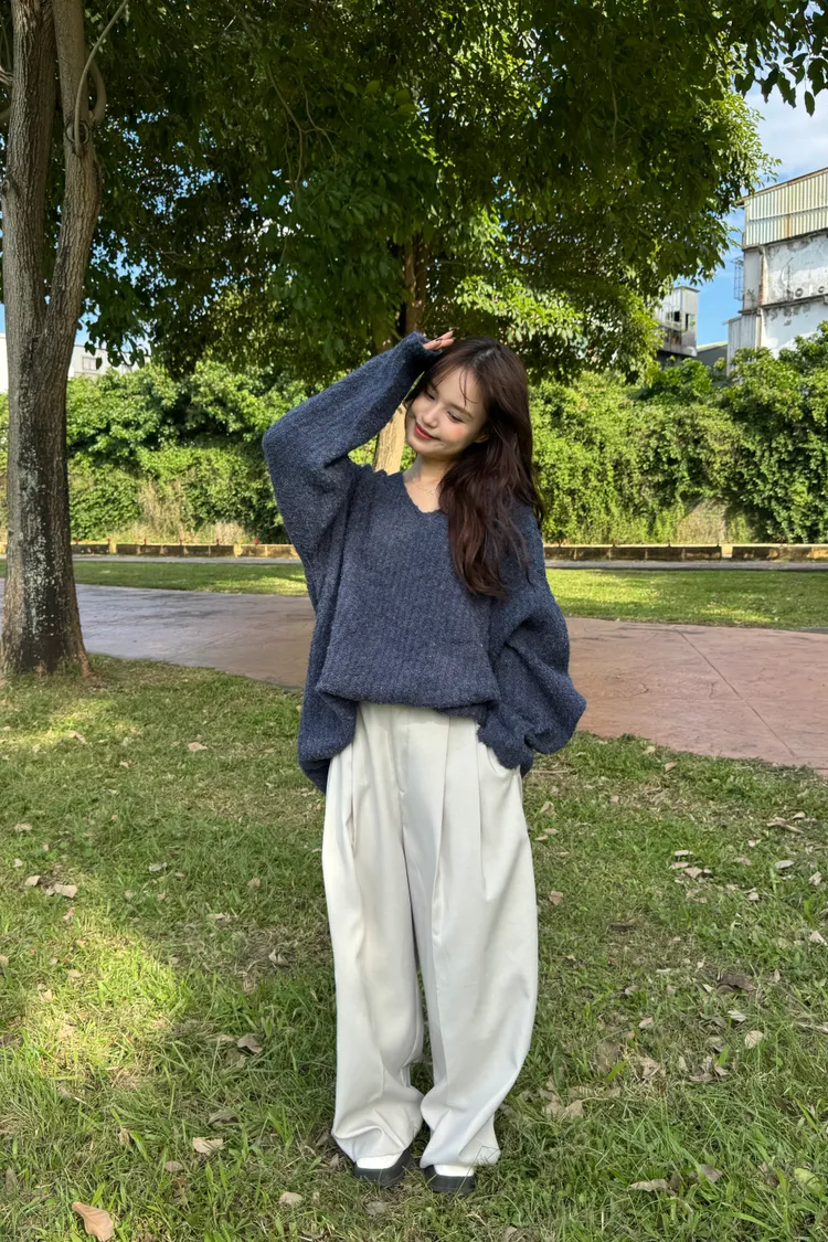 Oversize圈紗混色慵懶V領毛衣 7colors