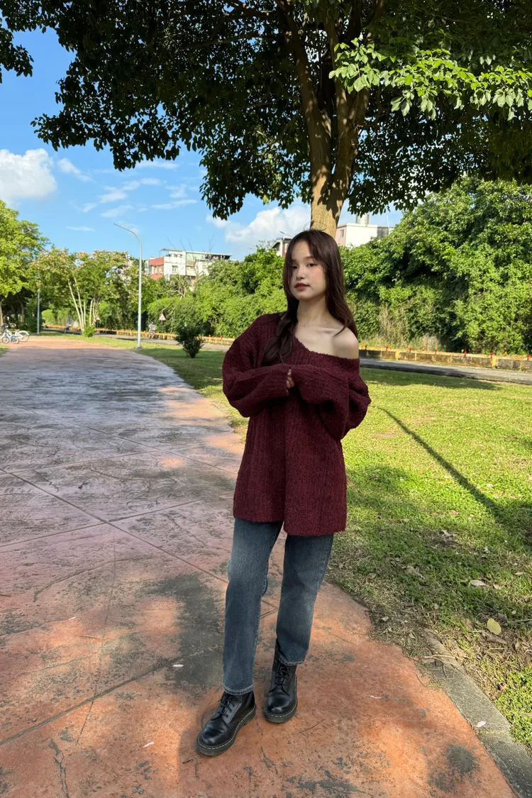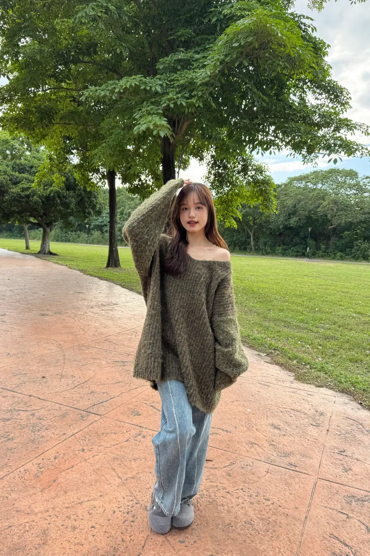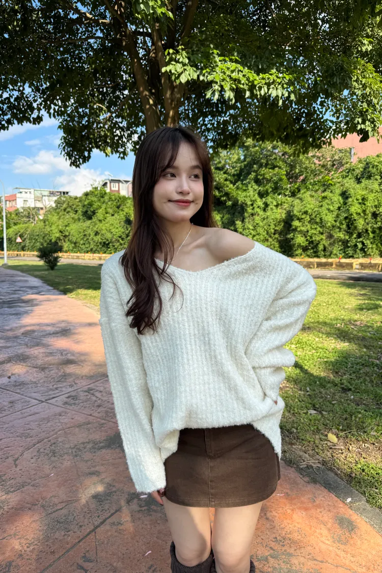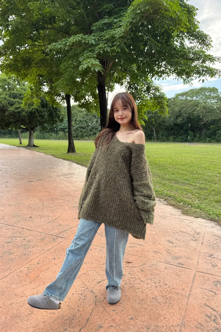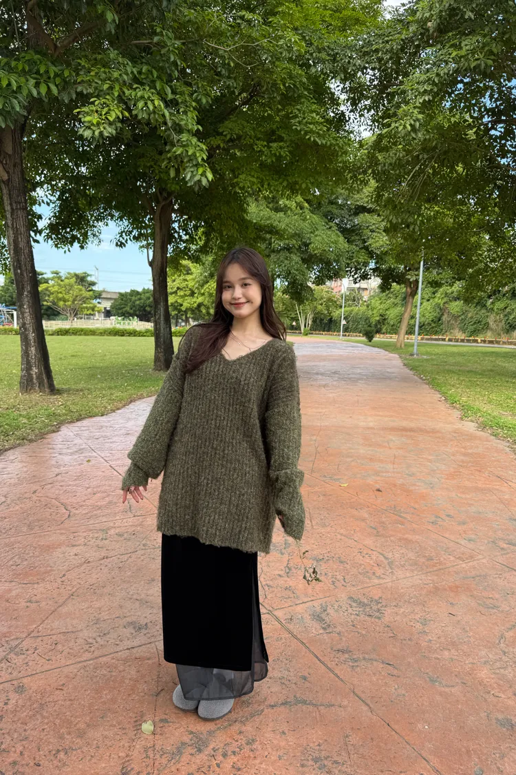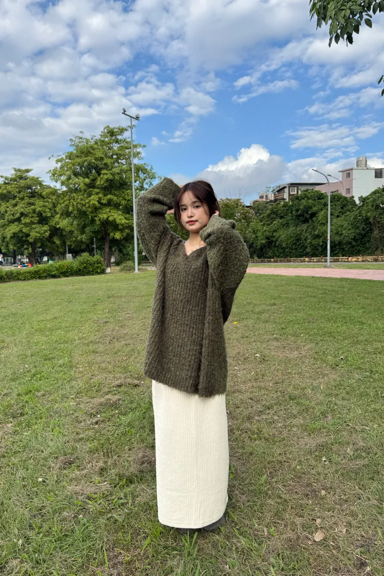 Oversize圈紗混色慵懶V領毛衣 7colors