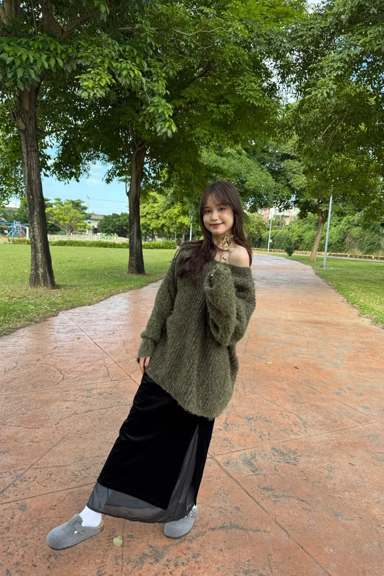 網紗拼接絨布長裙 2colors