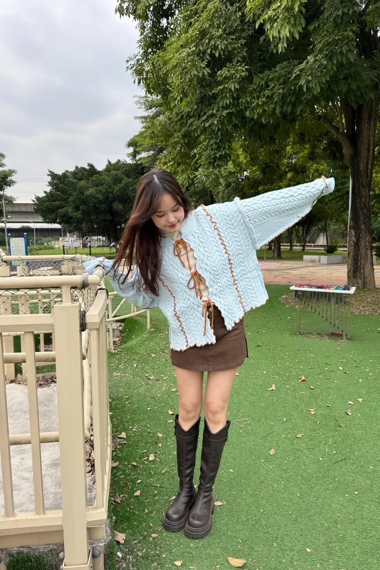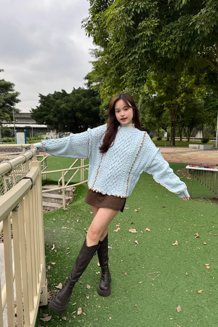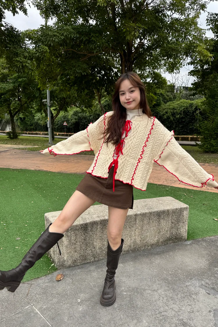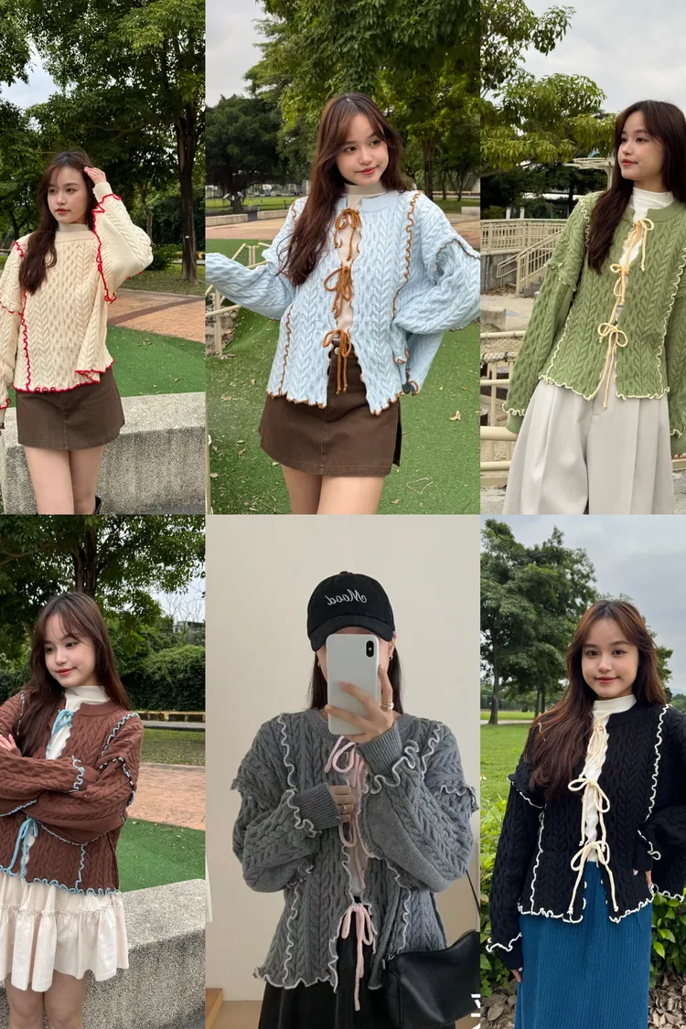 2way正反兩穿撞色滾邊綁帶毛衣 6colors