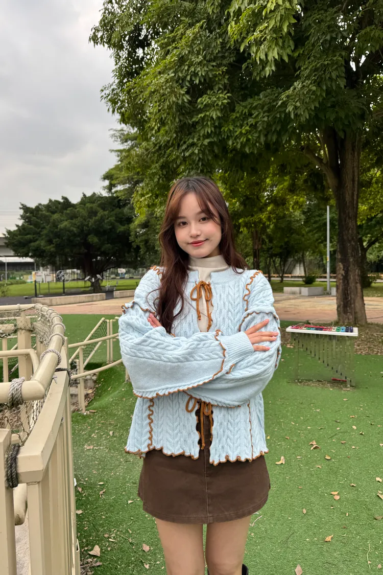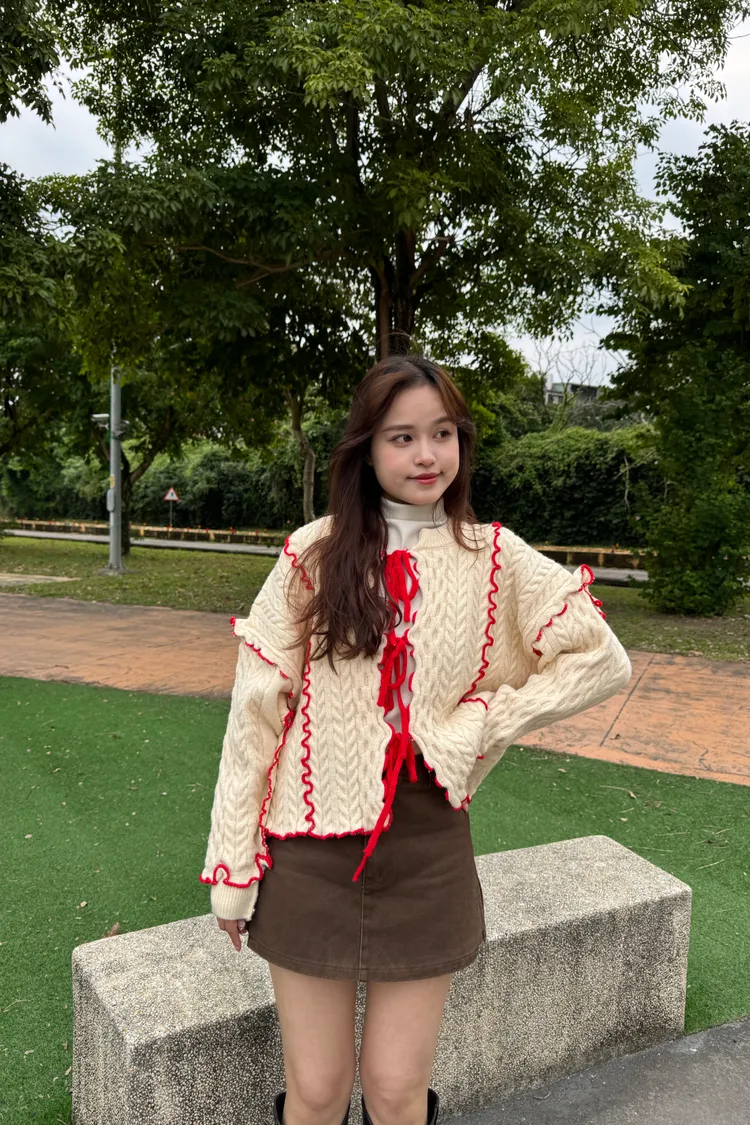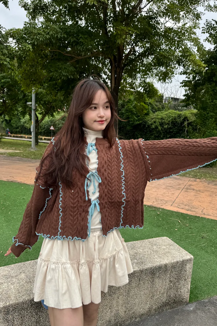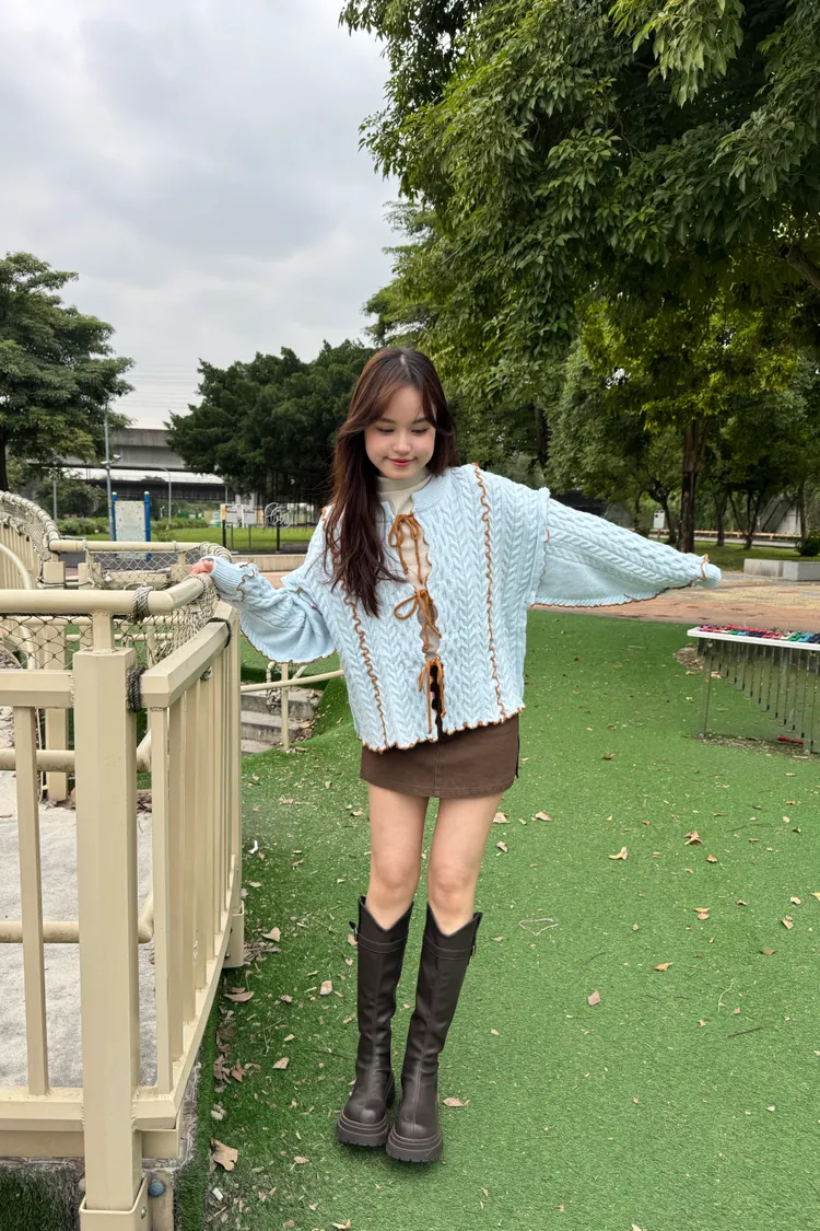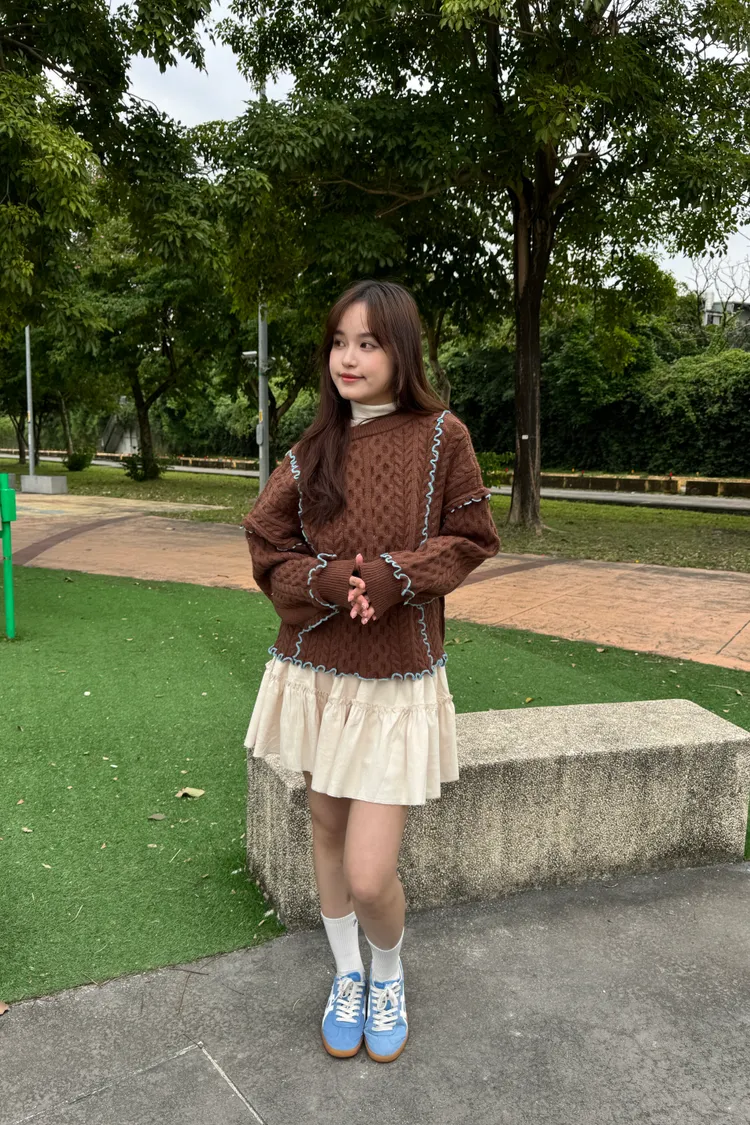 2way正反兩穿撞色滾邊綁帶毛衣 6colors
