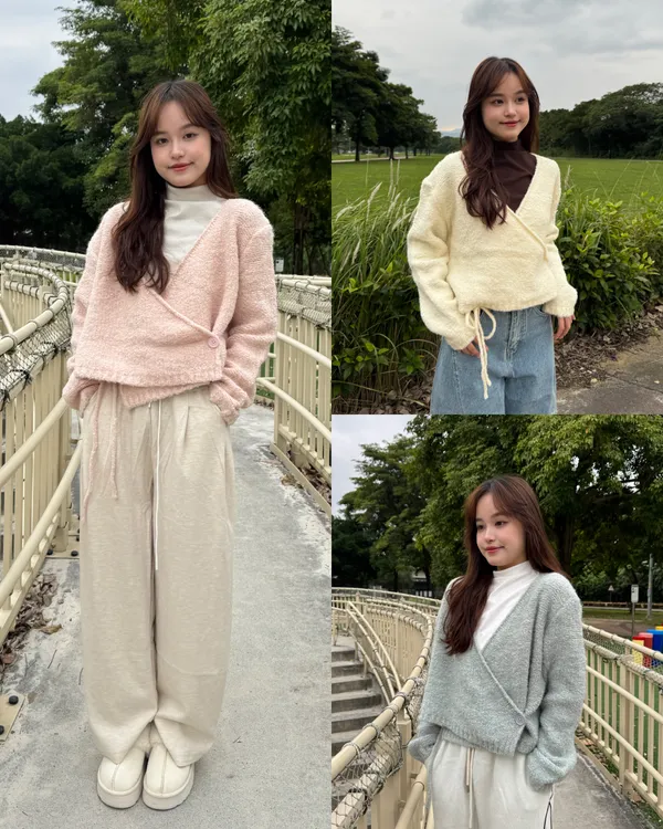 圈圈毛交叉設計短版毛衣 3colors