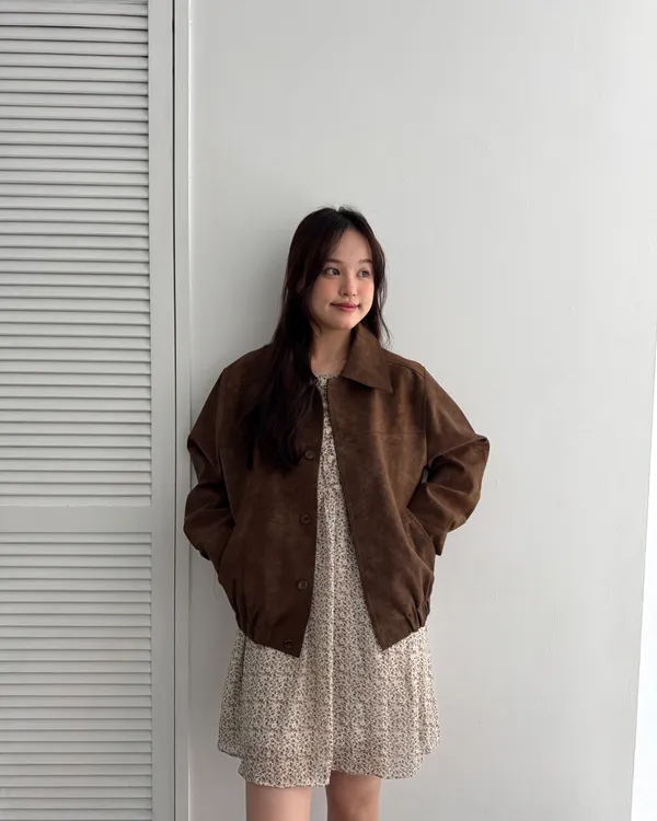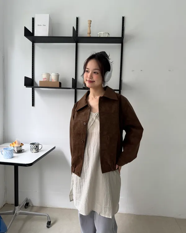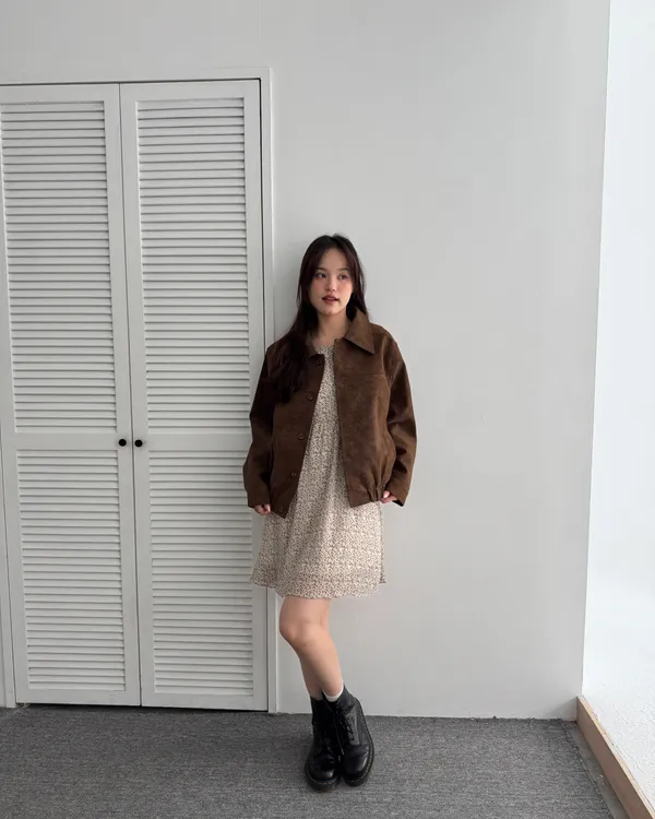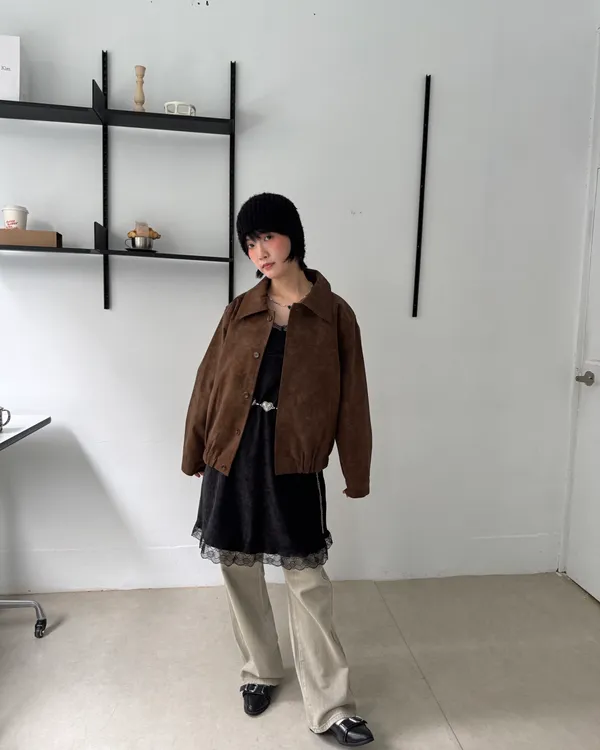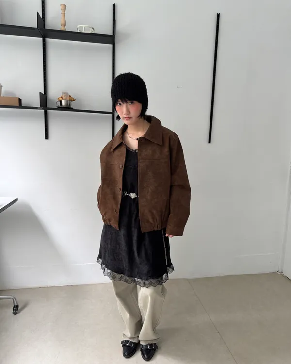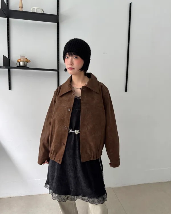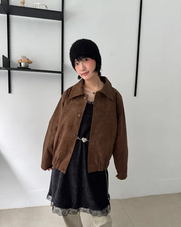 蕾絲滾邊微絨布罩衫洋裝 2colors