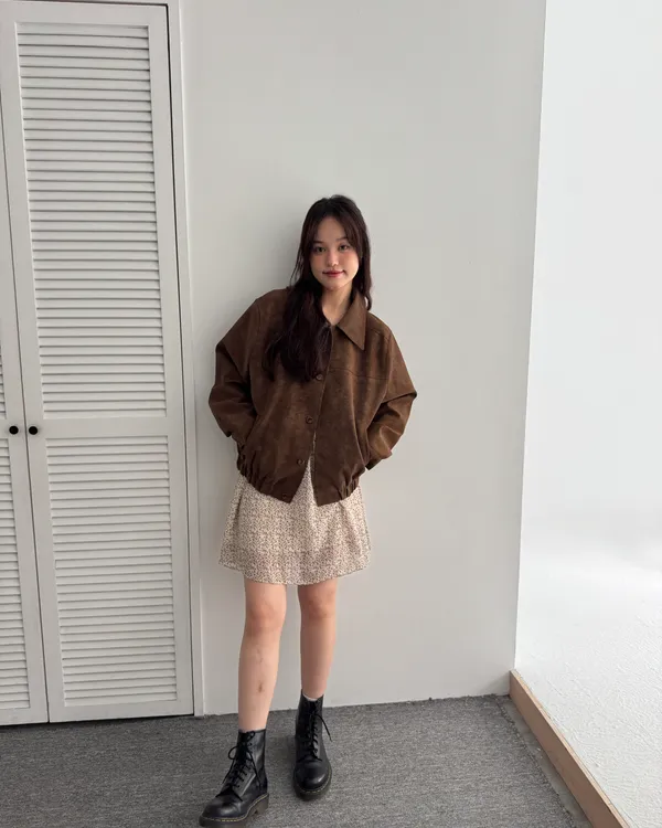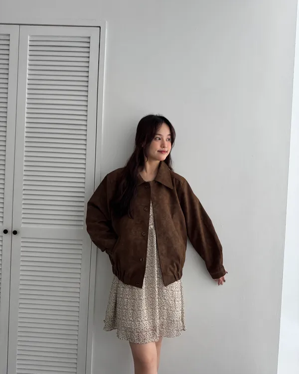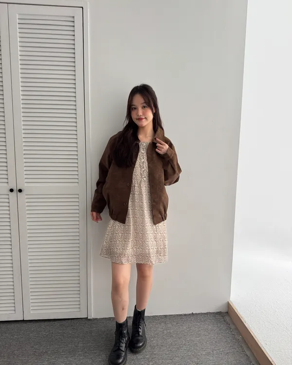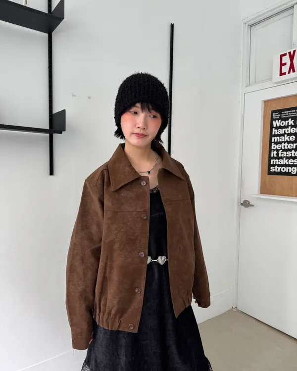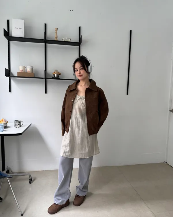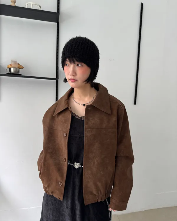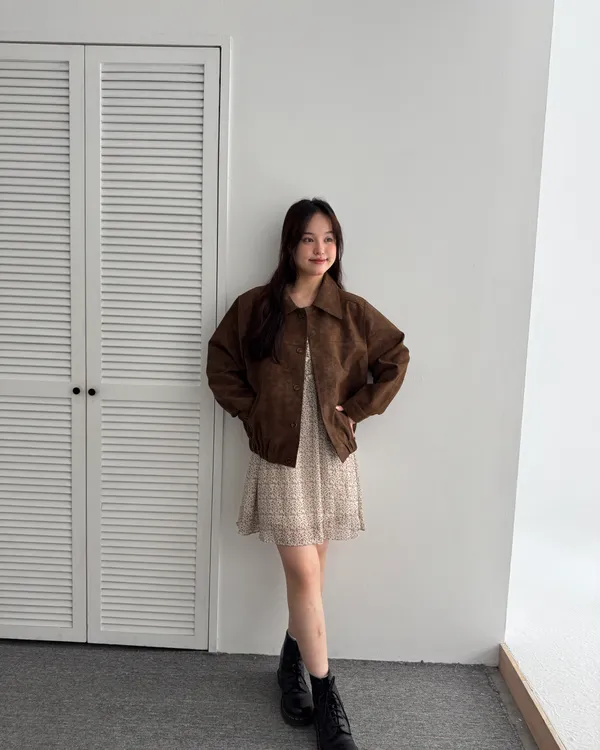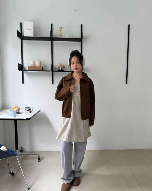 蕾絲滾邊微絨布罩衫洋裝 2colors