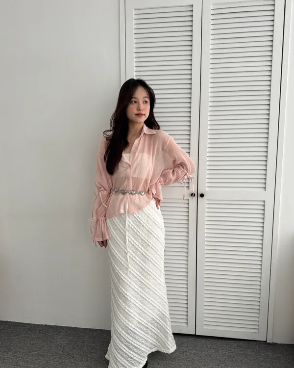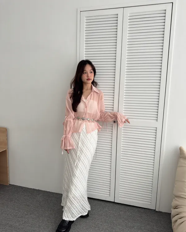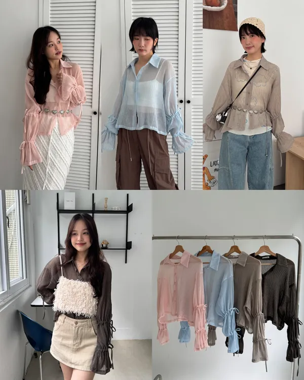 手袖雙蝴蝶結設計皺皺透膚襯衫 4colors