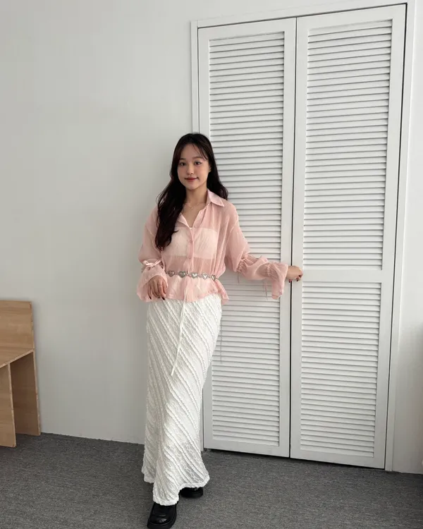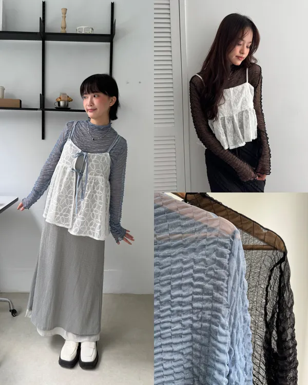 立體泡泡紗透膚上衣 2colors