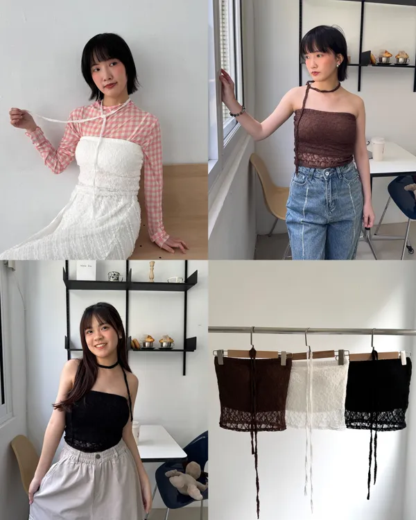 附綁帶蕾絲平口Bra top 3colors