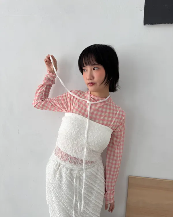 糖果格紋透膚上衣 5colors