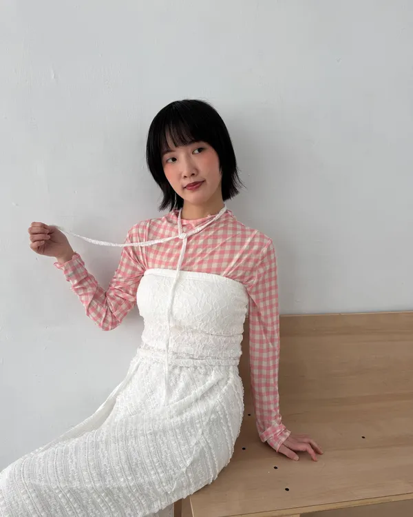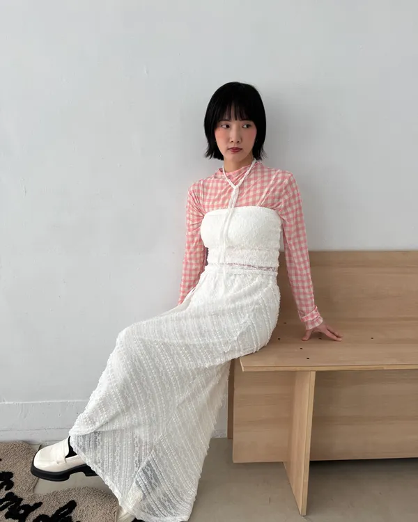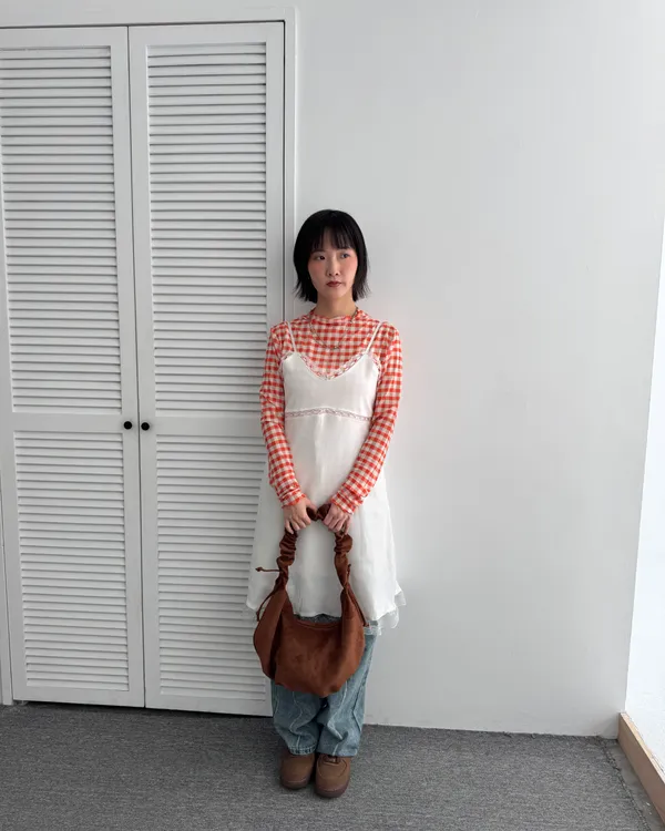 蕾絲滾邊微絨布罩衫洋裝 2colors