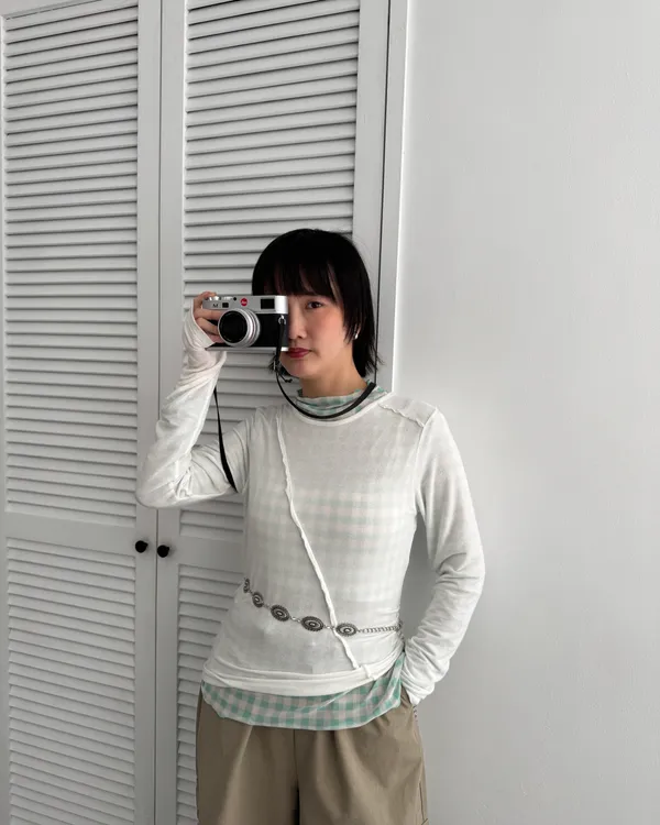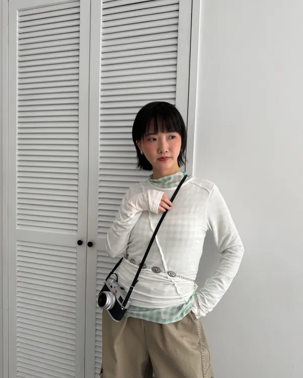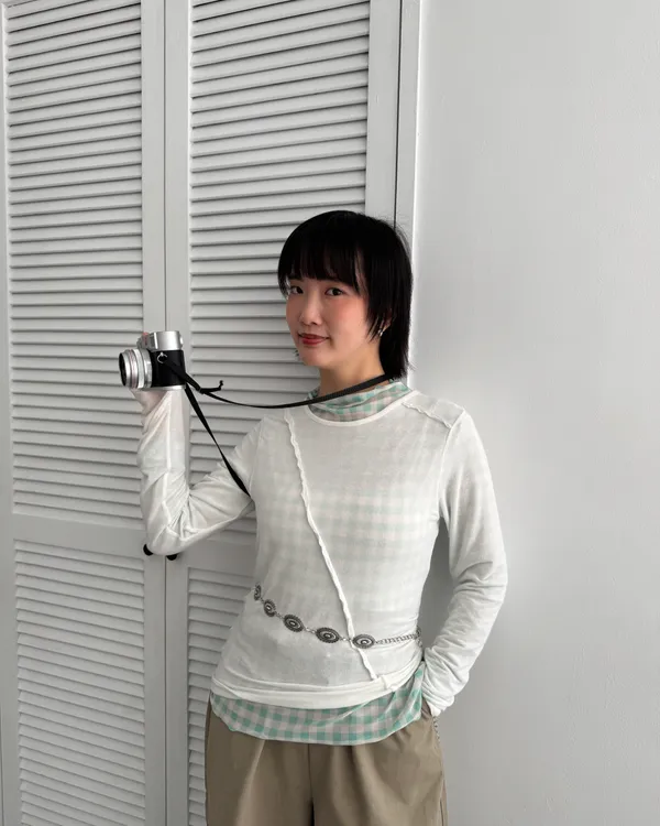 糖果格紋透膚上衣 5colors