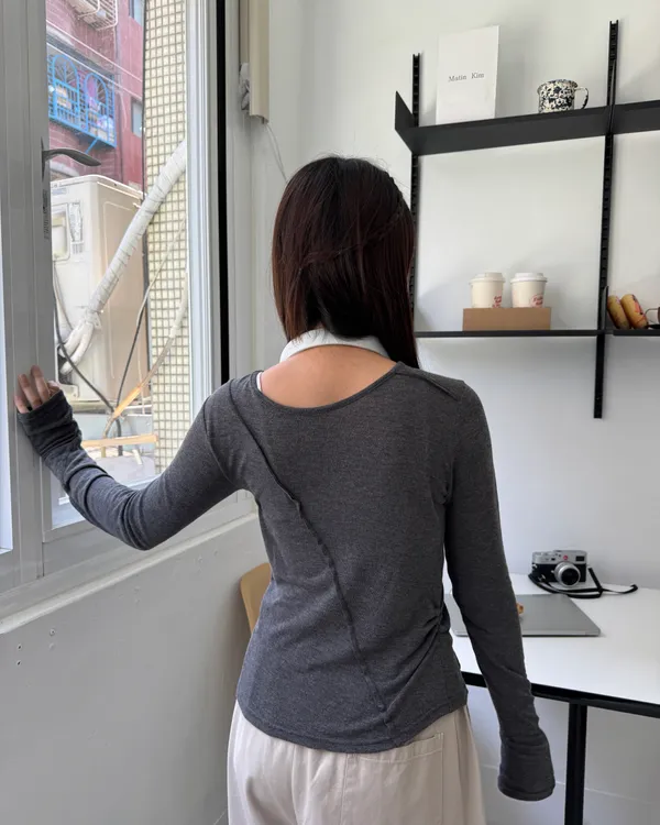 立體線條彈性指套長Tee 4colors