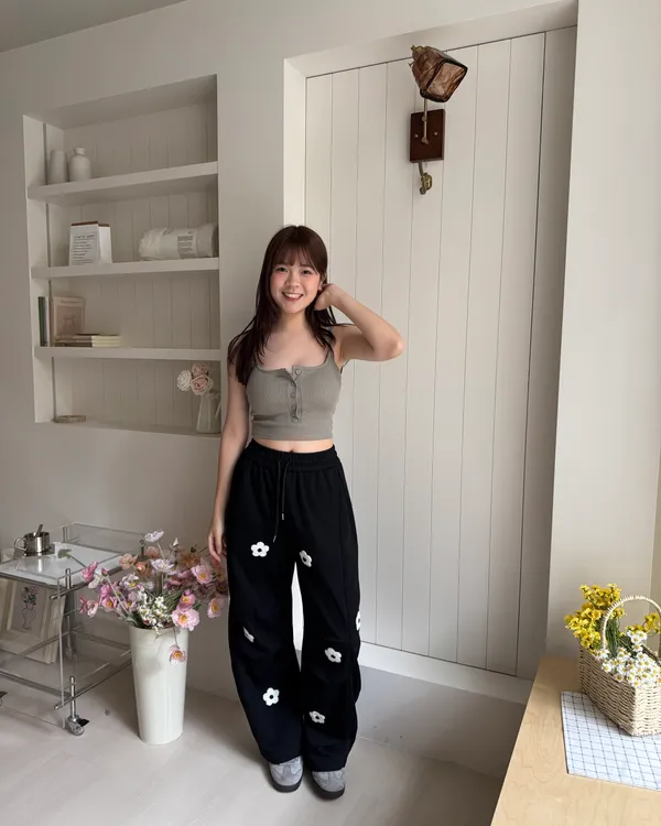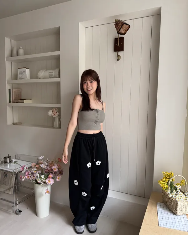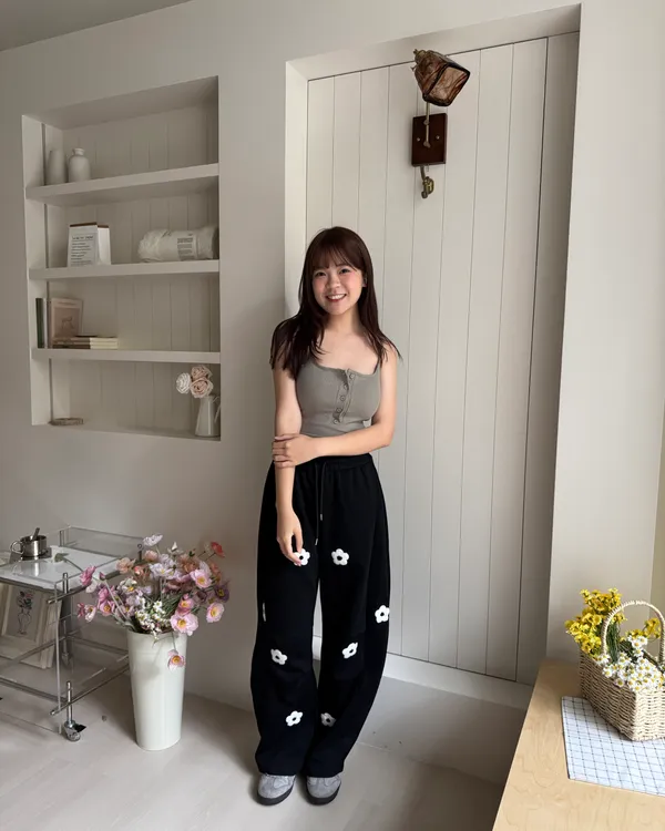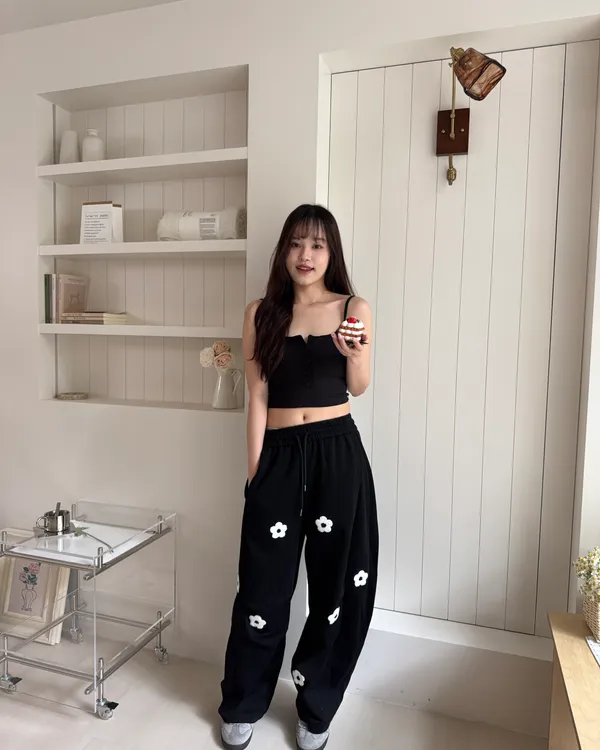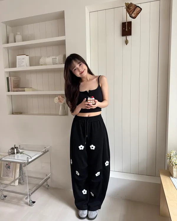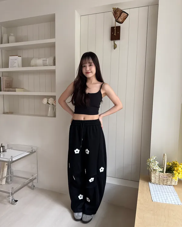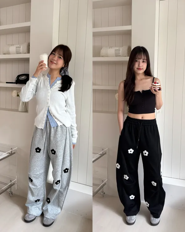 立體花花刺繡繭型棉褲 2colors