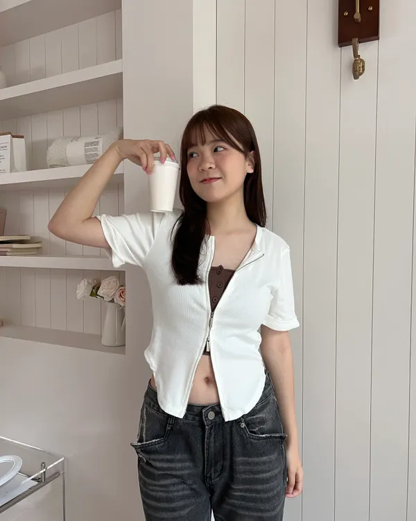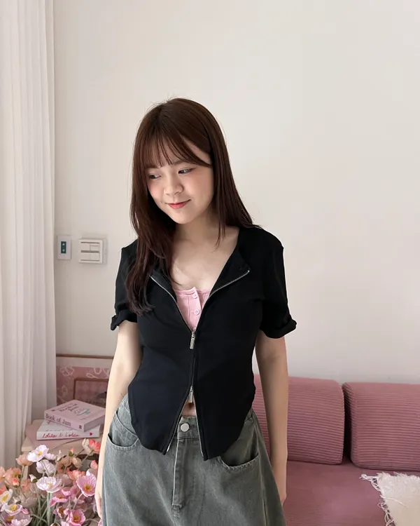 雙拉鍊下擺圓弧短袖上衣 4colors