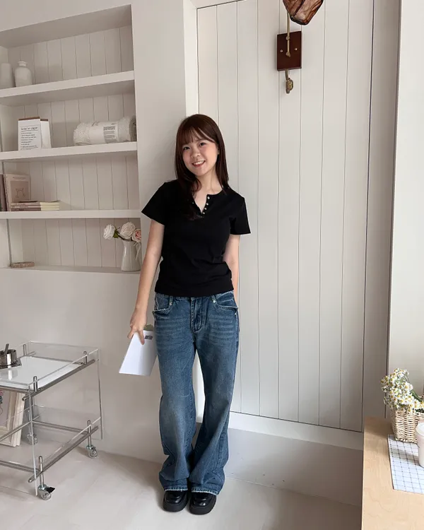 必收!個性水洗刷色直筒牛仔褲 2colors