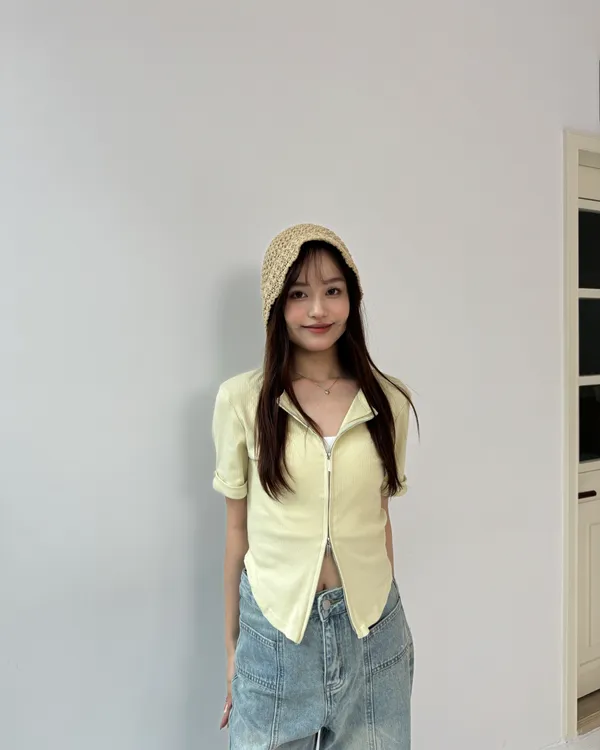 雙拉鍊下擺圓弧短袖上衣 4colors