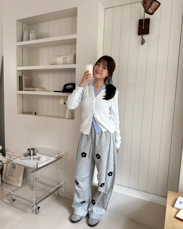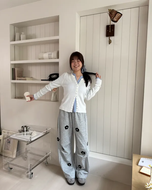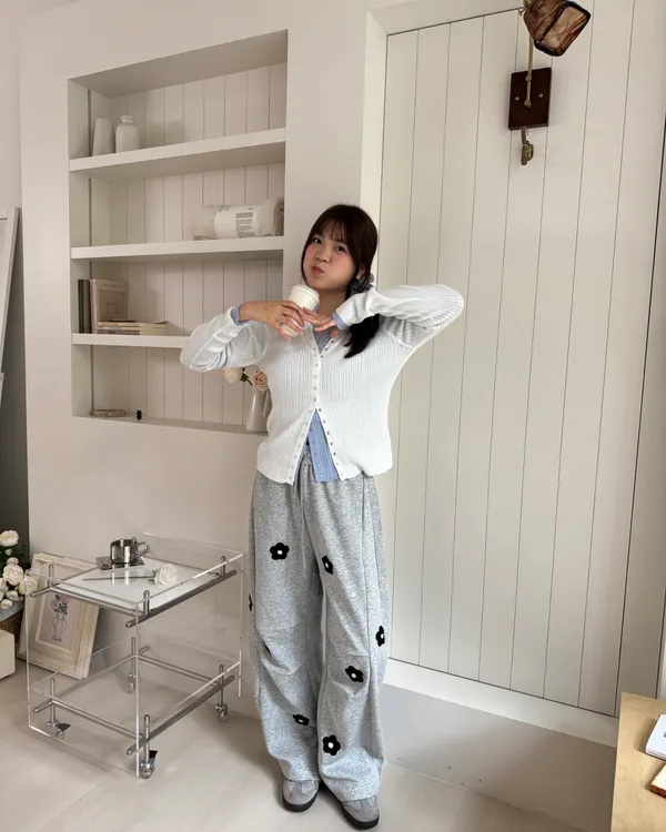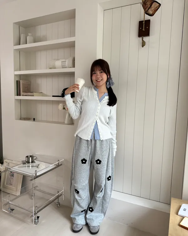 立體花花刺繡繭型棉褲 2colors