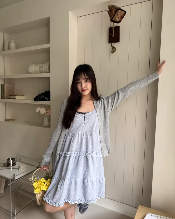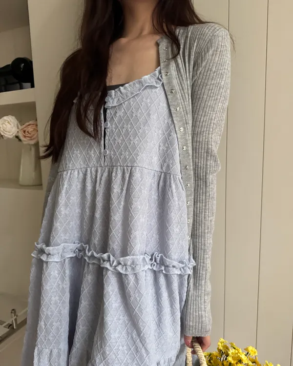 蝴蝶結壓紋蛋糕洋裝 3colors