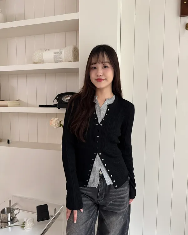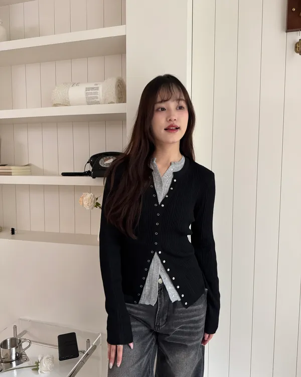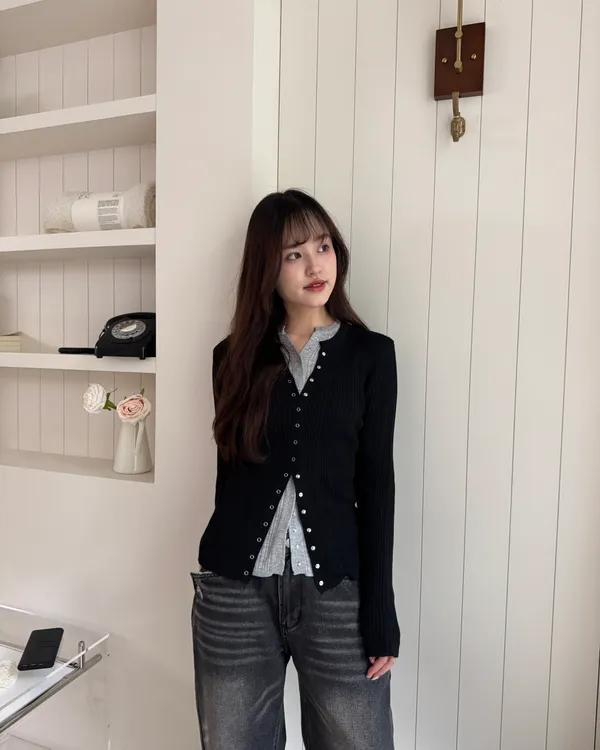金屬壓釦針織上衣 4colors