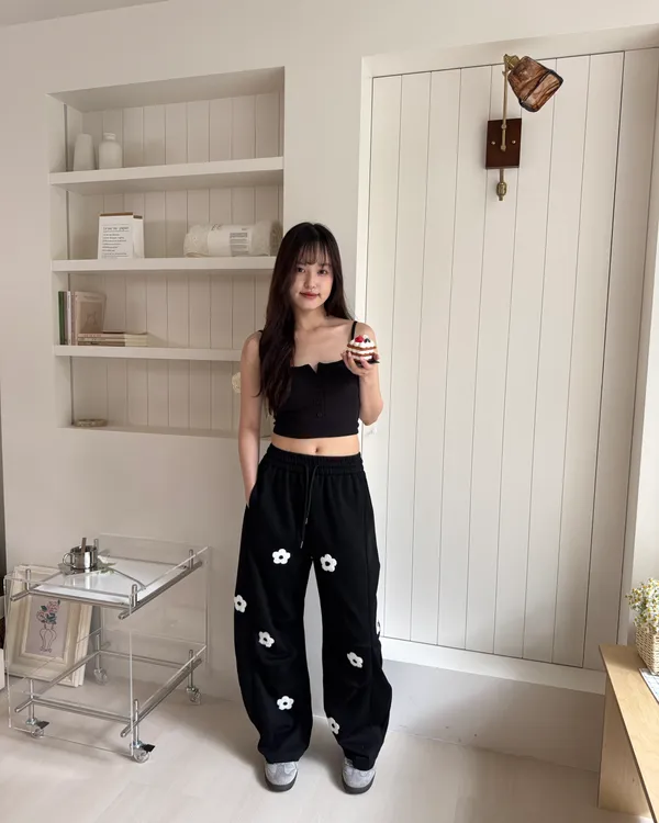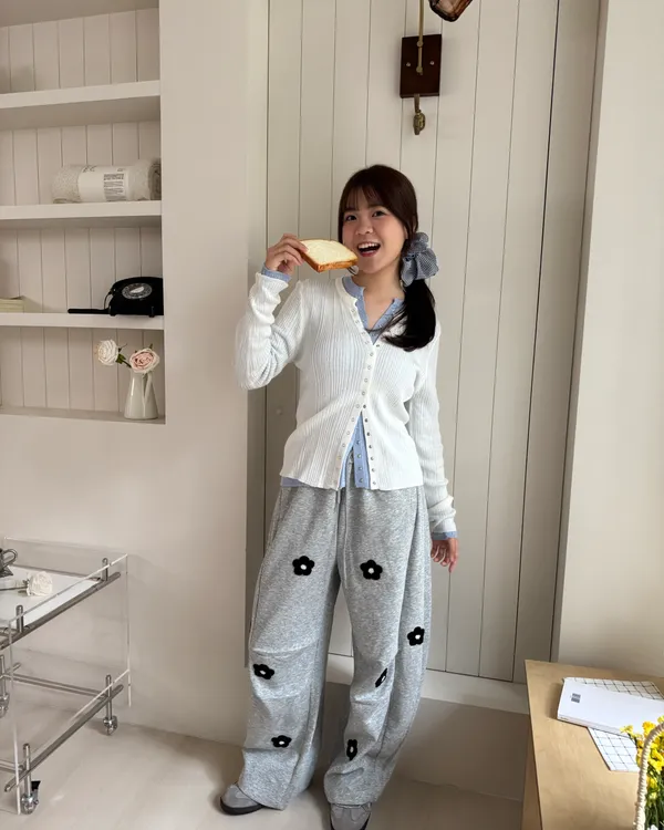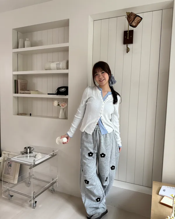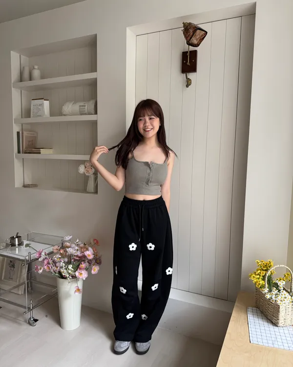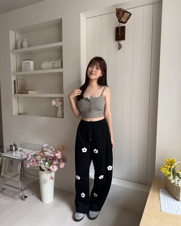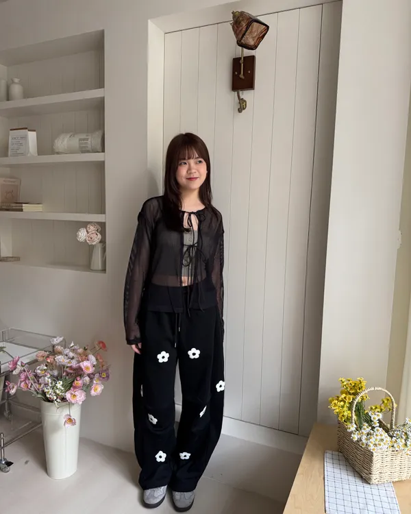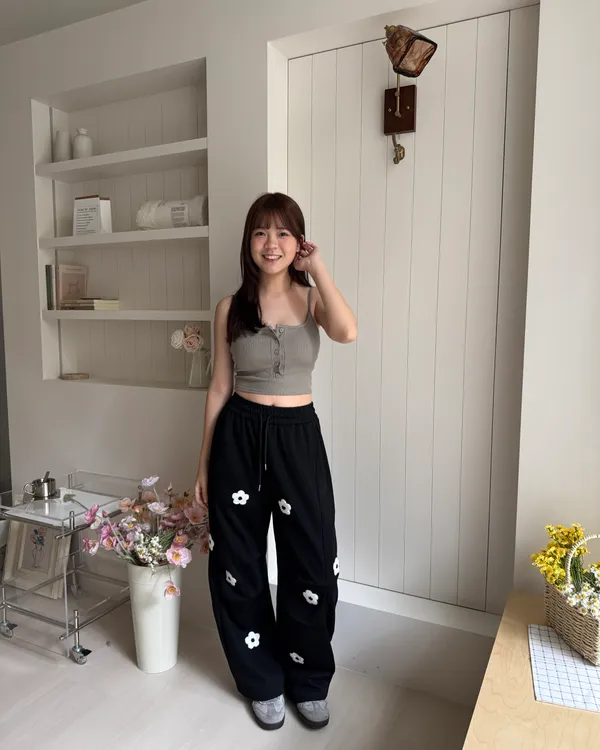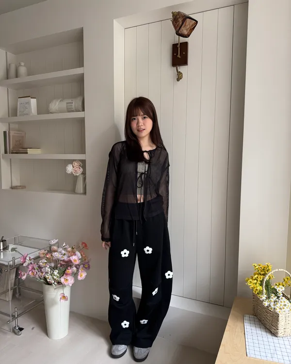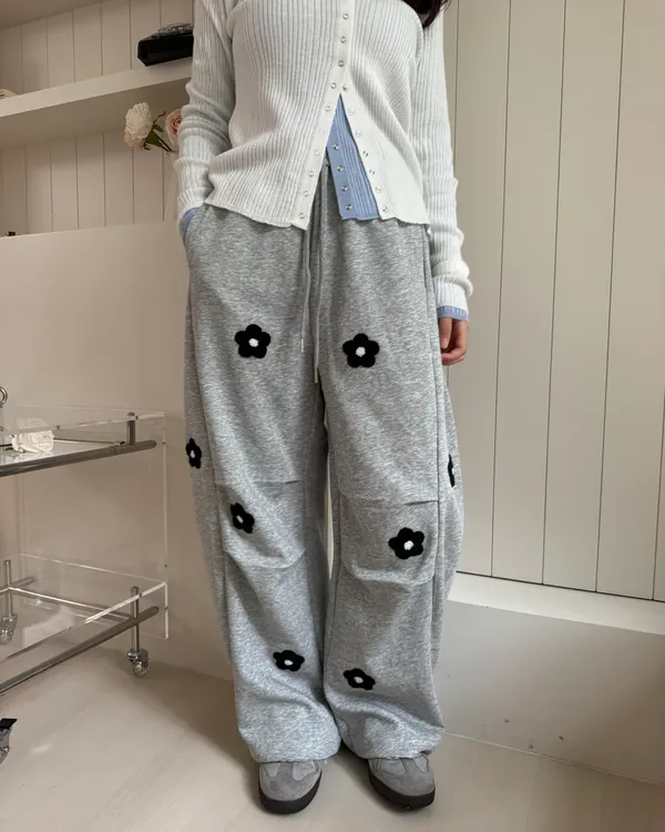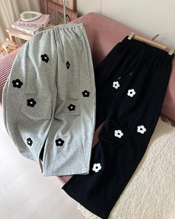 立體花花刺繡繭型棉褲 2colors